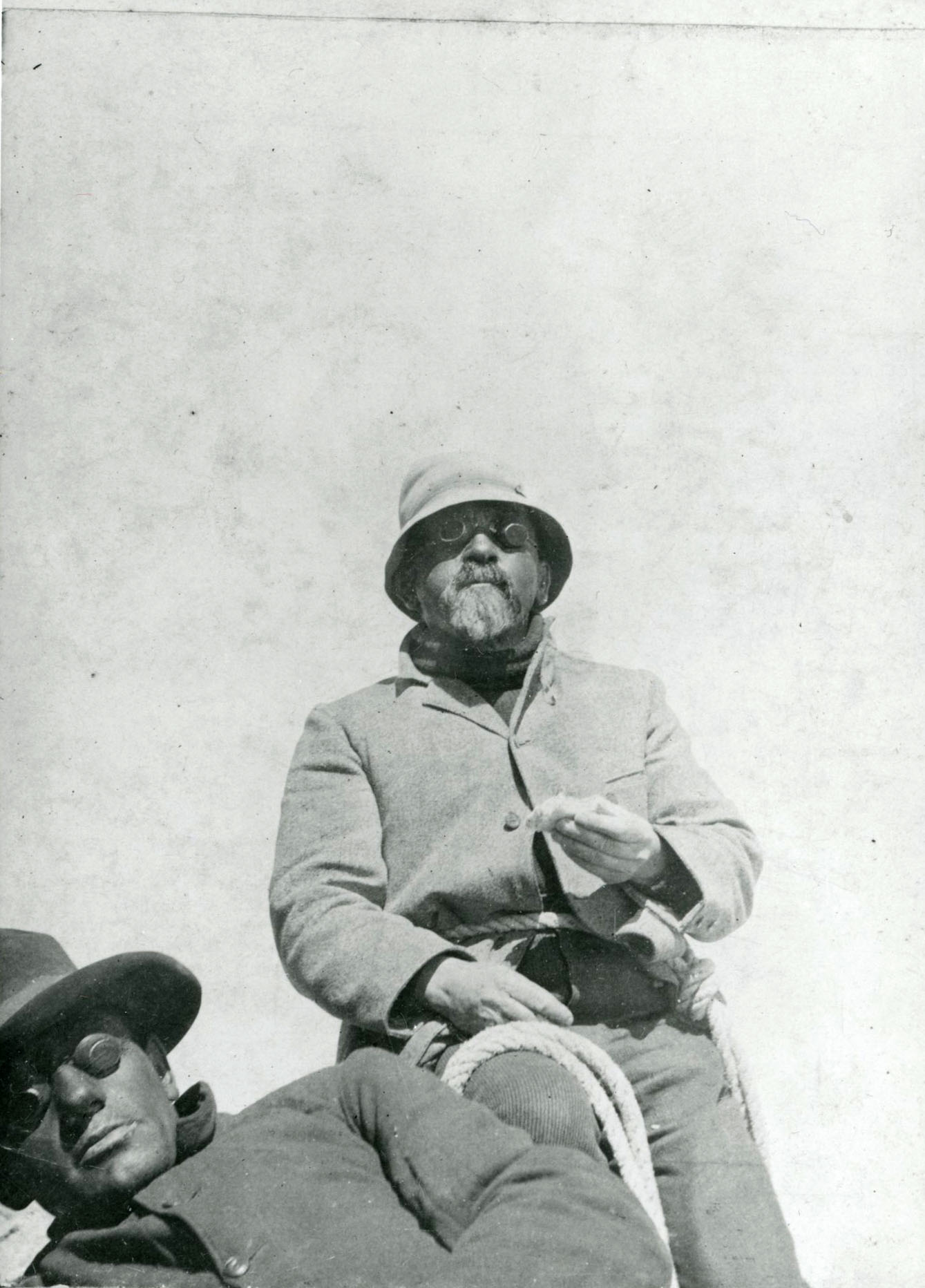 Henry Pittock climbing with a guide.