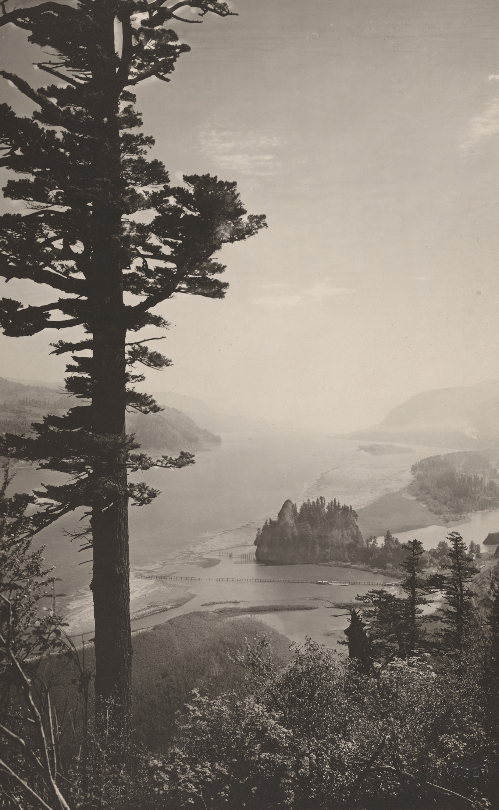 Photography played an important role in shaping perceptions of the Gorge. Carleton Watkins arrived from California in 1867, traveling by steamboat to photograph both the landscape and the human imprint with his cumbersome equipment. He returned in the early 1880s to make a new series of images. At the start of the twentieth century, Lily White and her friend Sarah Ladd cruised the river on White's eighty-foot houseboat, taking photographs of its towering cliffs, some of which appeared in Ladd's 1904 book Columbia River Scenery.