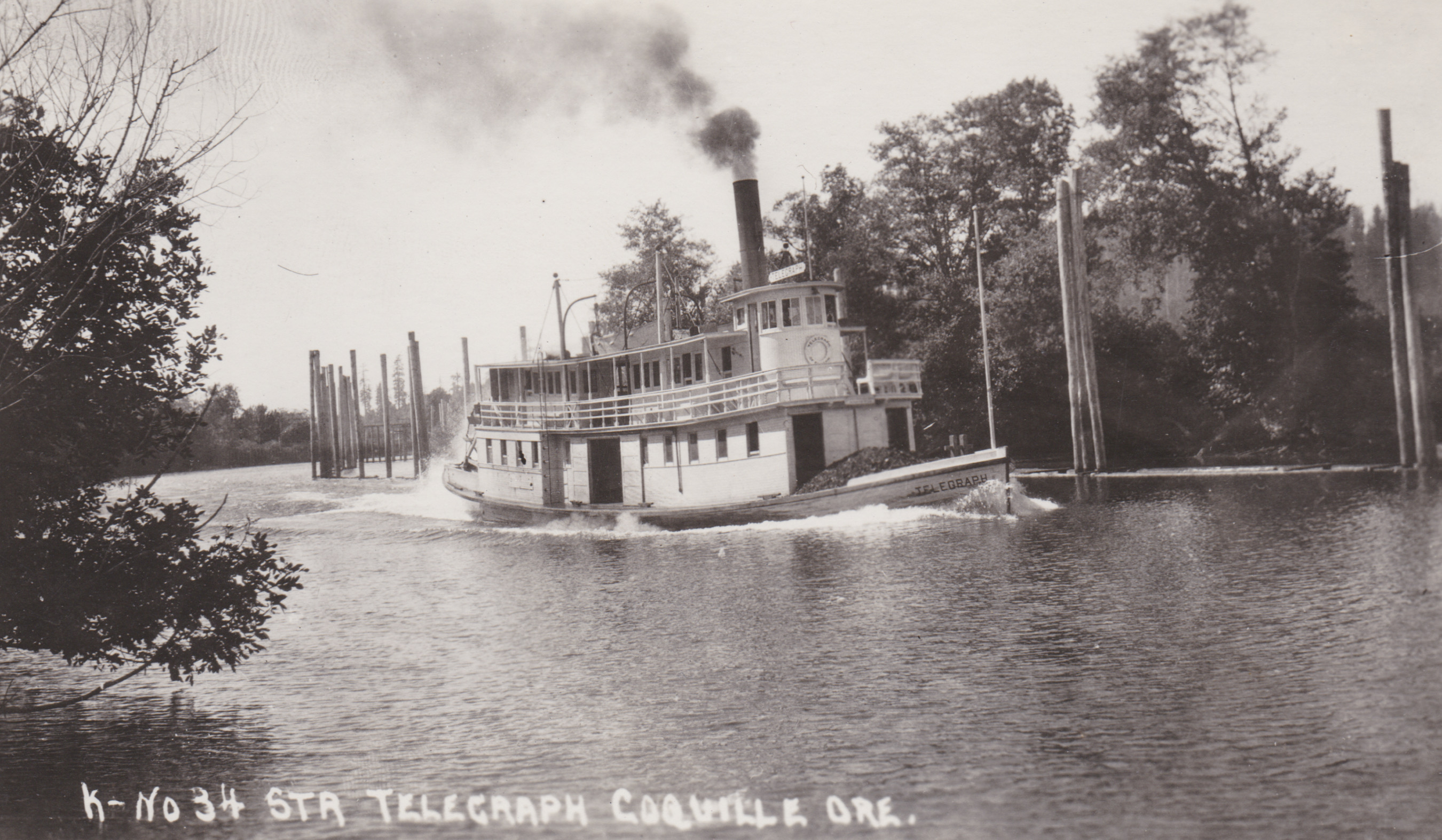 The riverboat Telegraph, built in 1914, provided freight and passenger service between Coquille and Bandon.