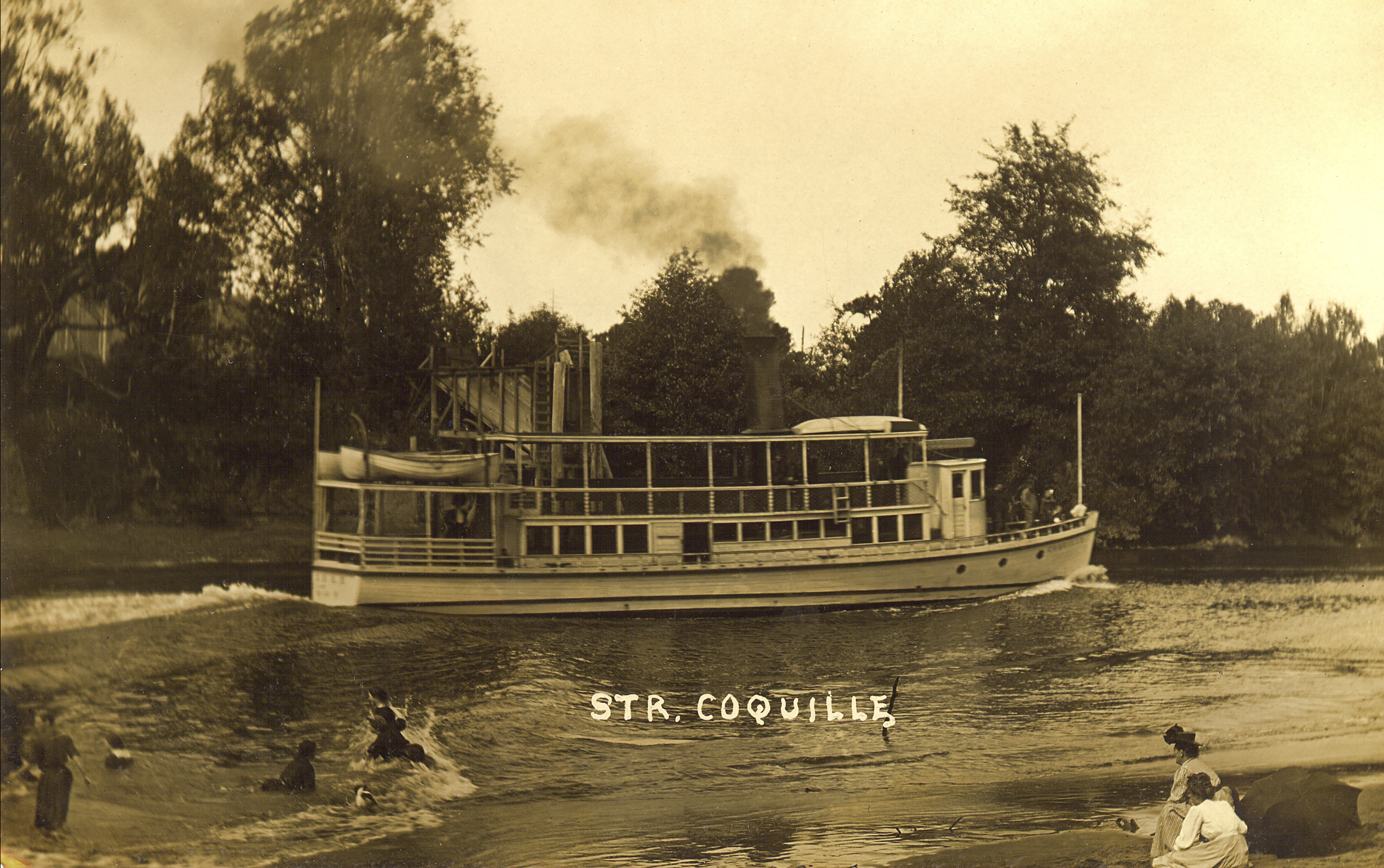 Given the lack of wagon roads, the community relied on the river for transportation. Riverboats became a part of daily activity at Coquille, with larger boats going to Bandon and smaller boats to Myrtle Point. Most of the vessels, which carried both passengers and freight, were steam-powered sternwheelers burning wood or coal and were built on the river at several shipyards between the two towns.
