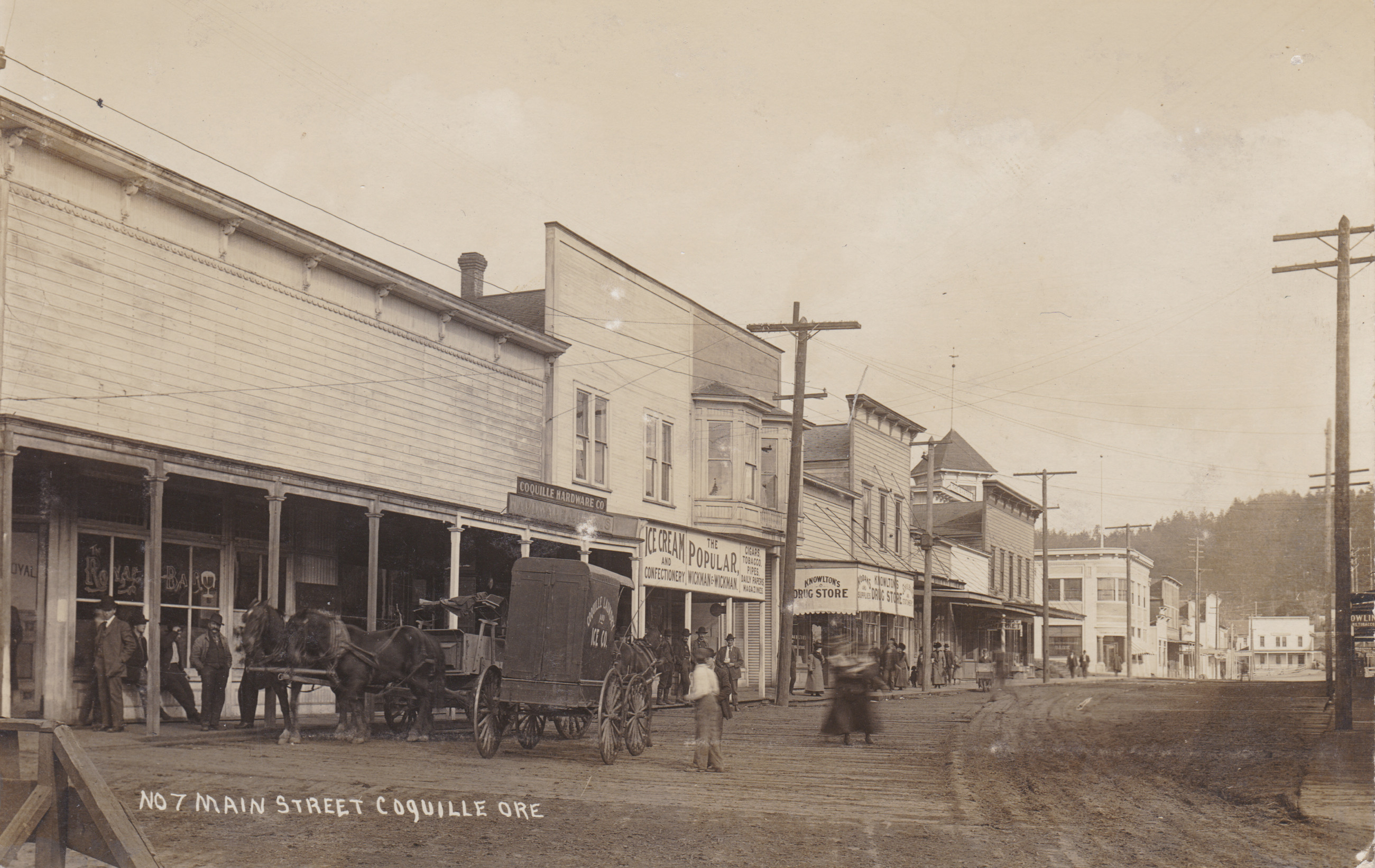 With the strength of the wood products industry and two large mills, Coquille continued to thrive, even when the Coast Highway bypassed the city in 1960. Only after major reductions in private and federal timber harvesting and the closure of the Georgia Pacific mill in the 1980s did Coquille’s economic fortunes falter. The town now has a population of about four thousand people with an economy still based on timber. It is home to the Sawdust Theatre, the annual Gay Nineties celebration, and the Coquille Valley Museum.