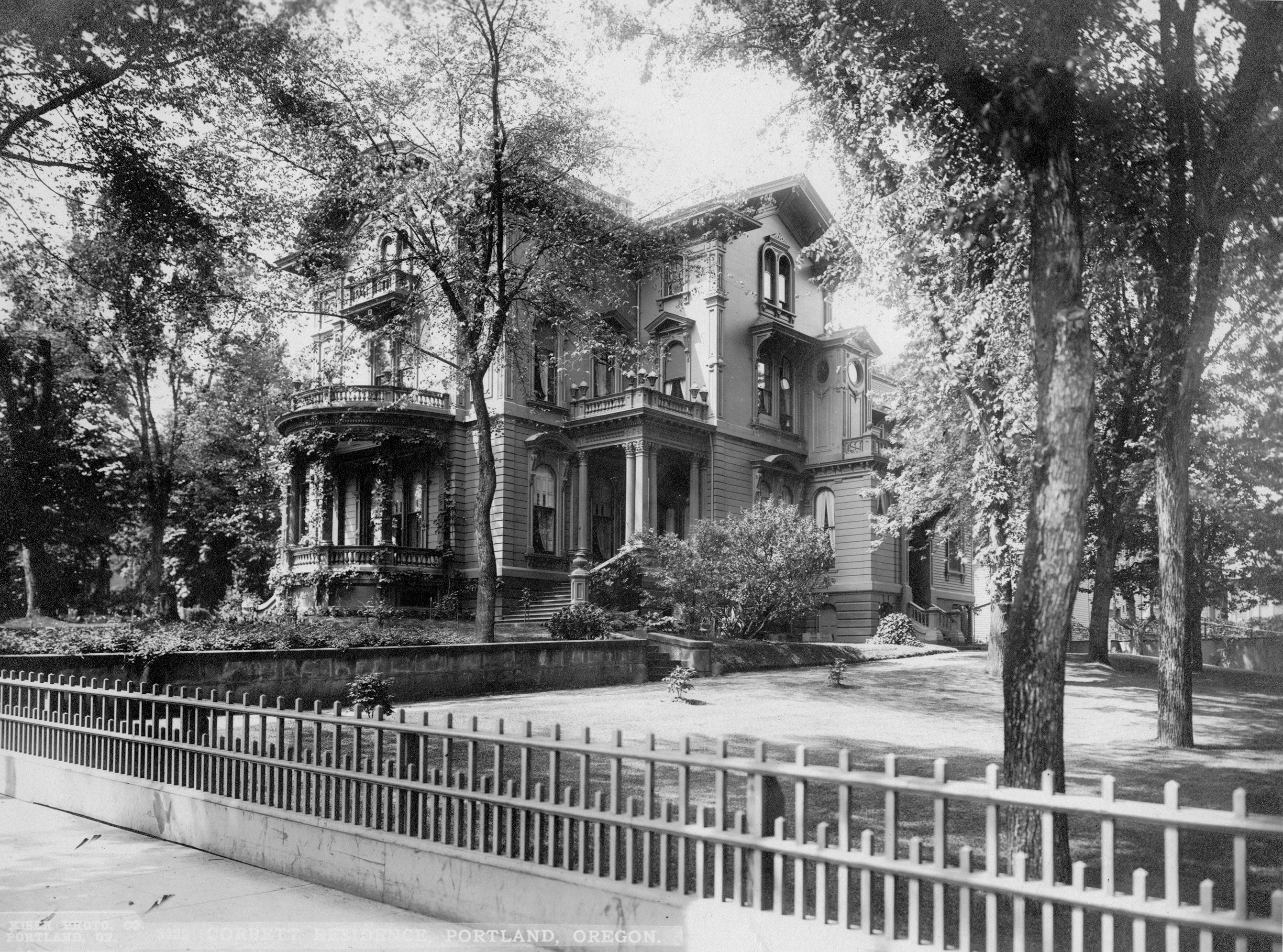 The Corbetts had two sons before Caroline died in 1866. He married Emma Ruggles in 1867, and by 1871 he had built a $40,000 three-story brick building on Front Street and had established himself as an accomplished businessman. Corbett invested wisely and widely in woolens and salmon, property, stage coaching, railroading, and banking and hardware with his brother-in law, Henry Failing, who had married Corbett’s sister, Emily, in 1858. Among his corporate roles, he was a director of the Oregon Steam Navigation Company.