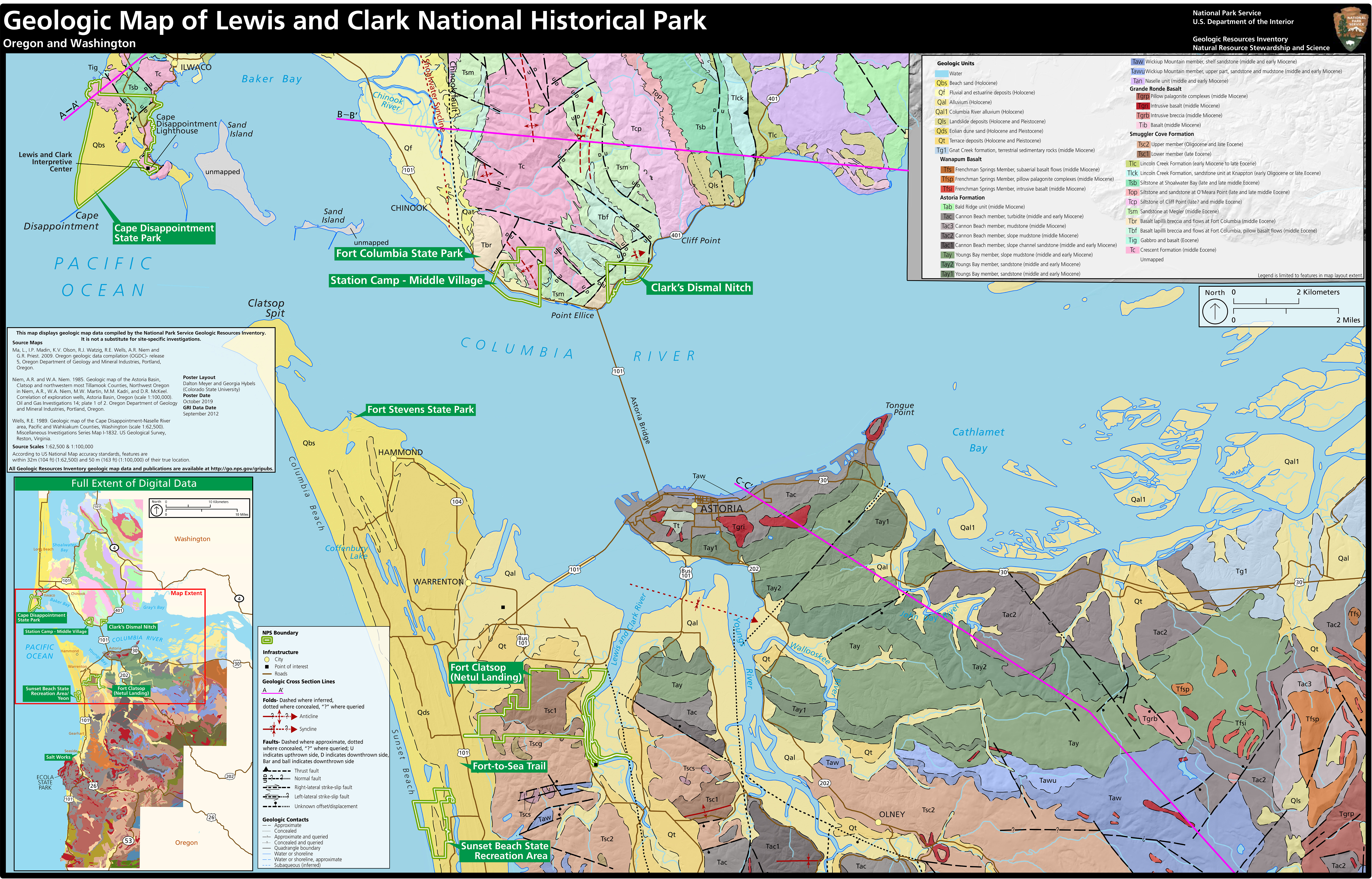 ![]()  Geologic map of Lewis and Clark National Historical Monument. Courtesy National Park Service