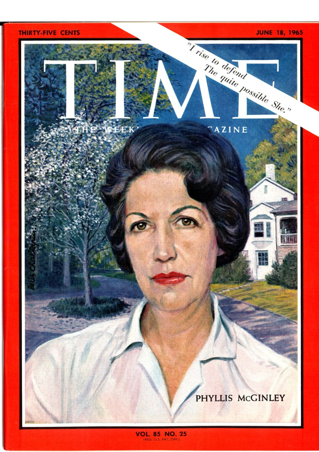 ![]()  Phyllis McGinley on the cover of Time Magazine, June 18, 1965. Courtesy Time Magazine.