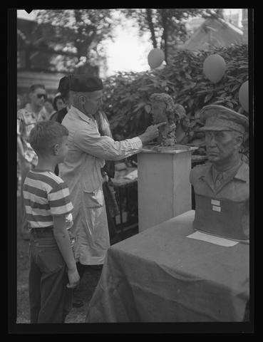 Sculptor Ivan Hauser at the Oregon Society of Artists Fair in the Park Blocks, 1951.