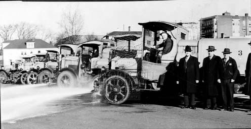 City Commissioner Fred L. Peterson in the driver's seat of one of seven street cleaning flushers being put into service, 1941.