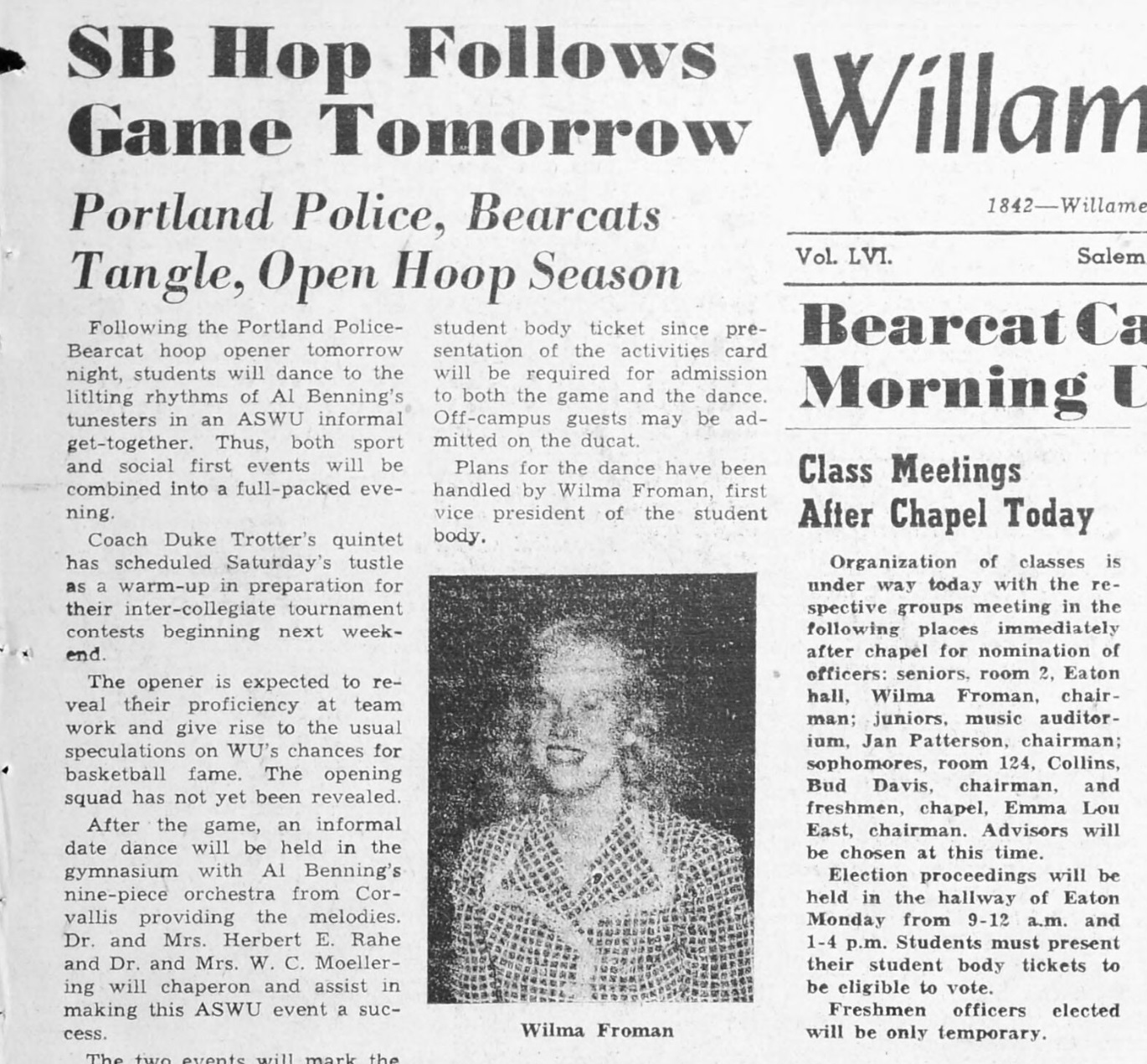 Wilma Froman (Sheridan), Willamette Collegian, 1944.