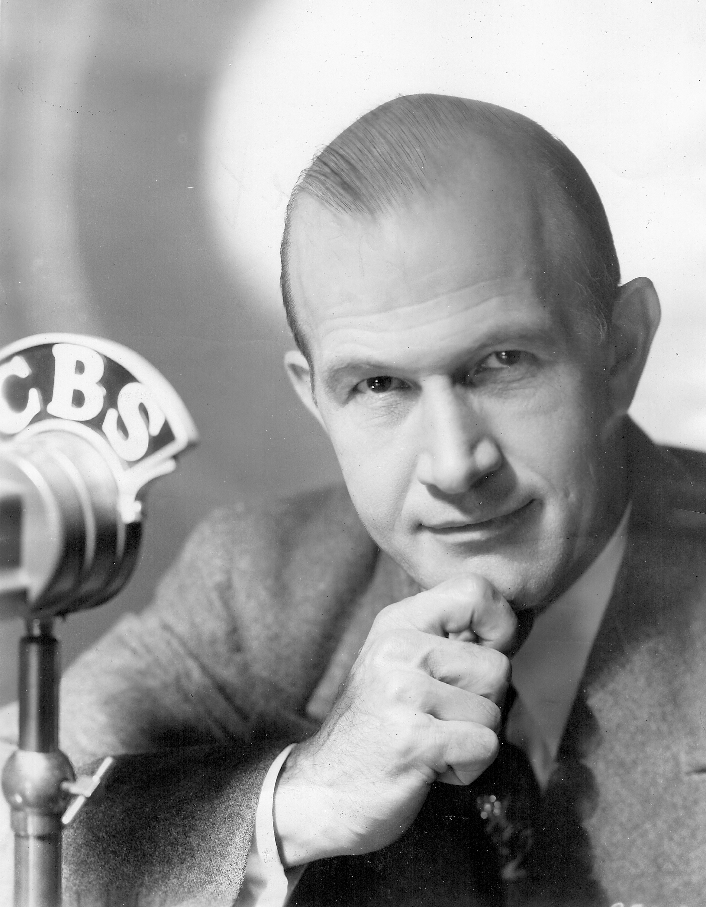 Taylor with CBS microphone. CBS News Photo Department press photo, 1934.