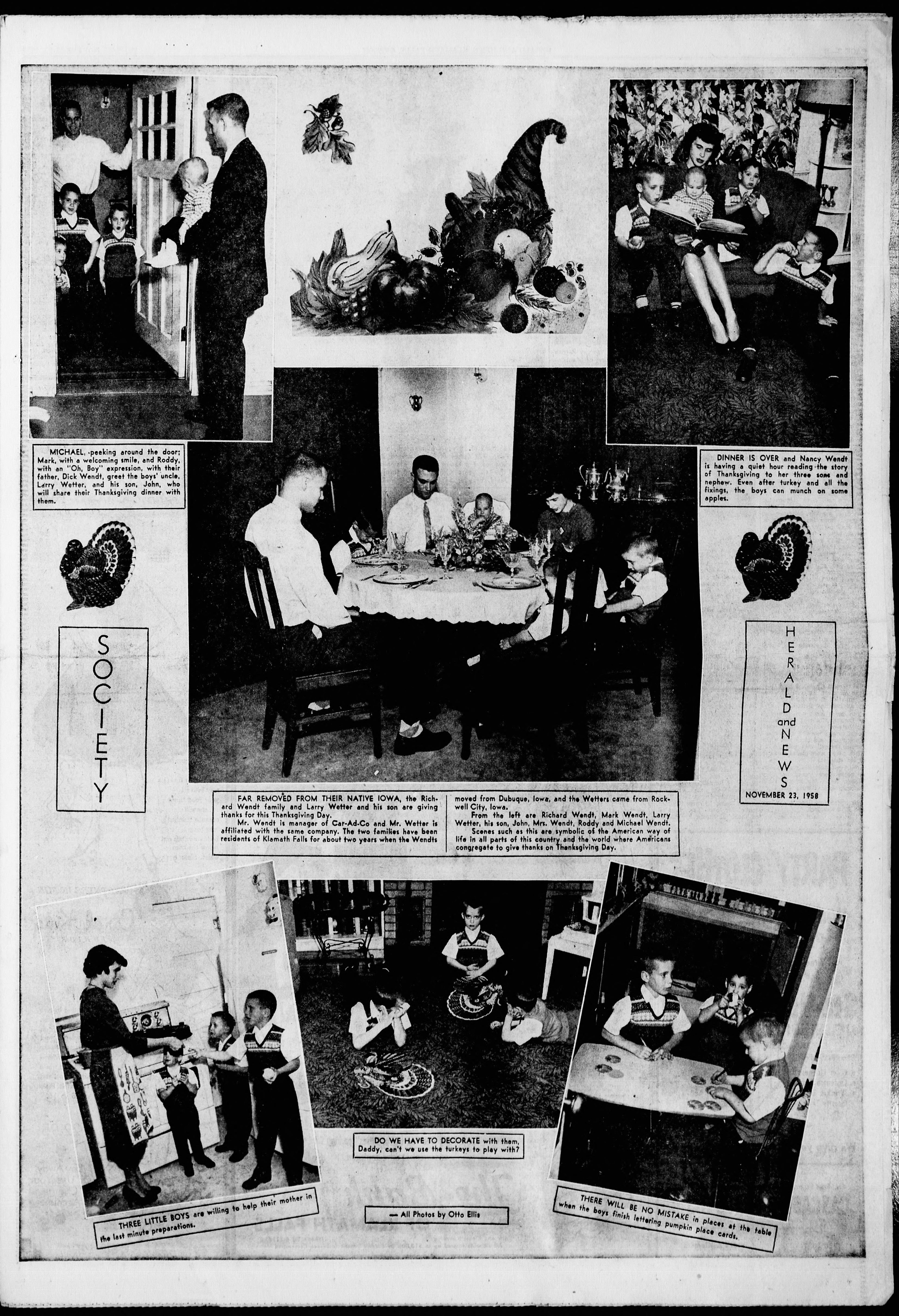 ![]()  Klamath Falls Herald and News newspaper featuring Richard Wendt and his family, Nov. 23, 1958. Courtesy University of Oregon Libraries.