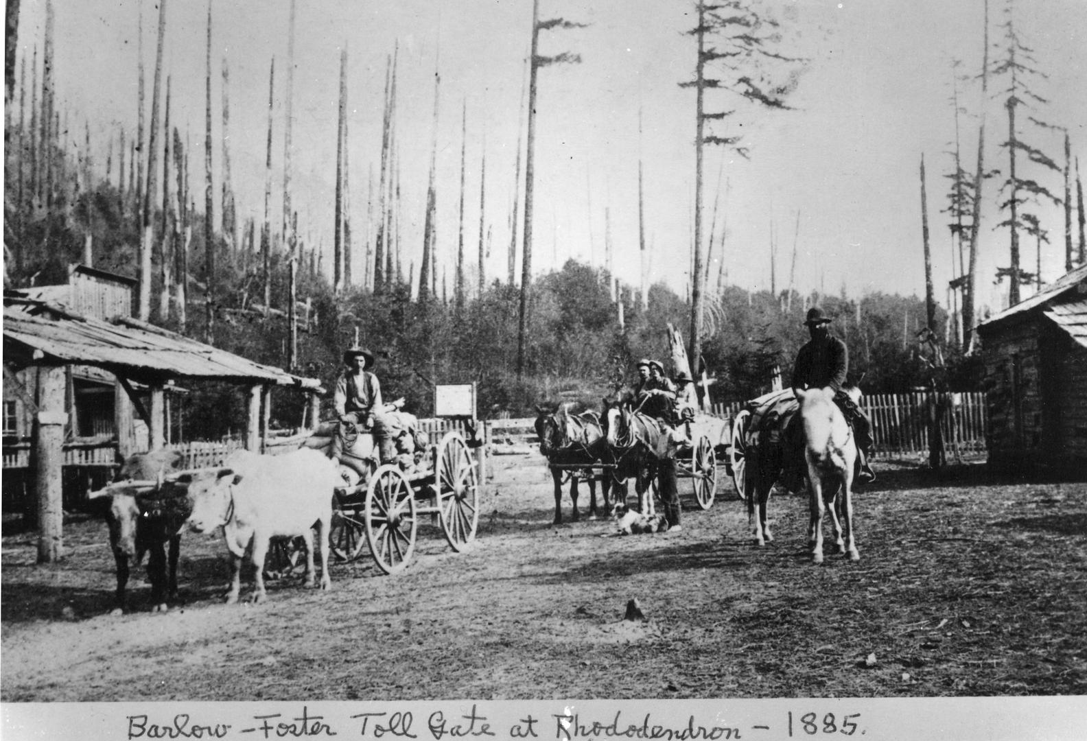 Courtesy Oregon Explorer, Oregon State University. "Barlow-Foster toll gate at Rhododendron, Oregon" Oregon Digital.