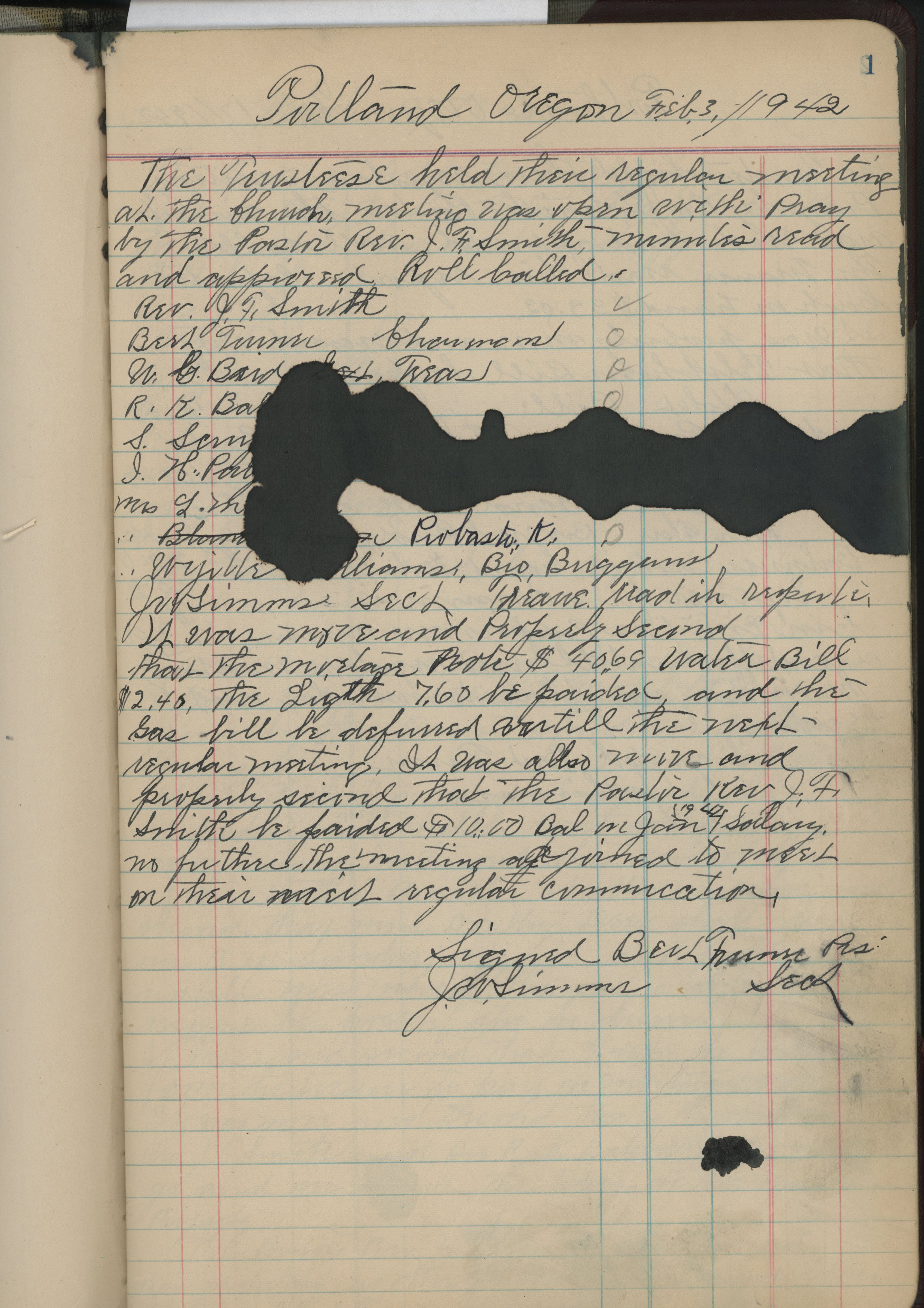 First African Methodist Episcopal Zion Church records, Mss 2304. Oregon Historical Society Research Library, Portland.