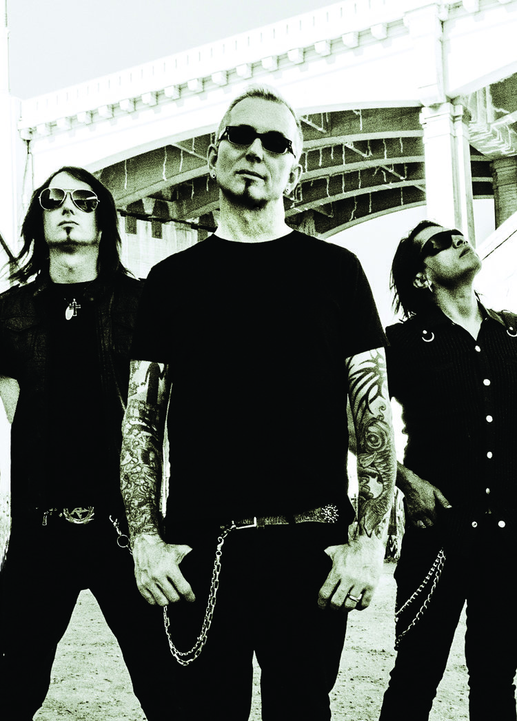 Publicity photo of Art Alexakis (front center) and his bandmates in Everclear.
