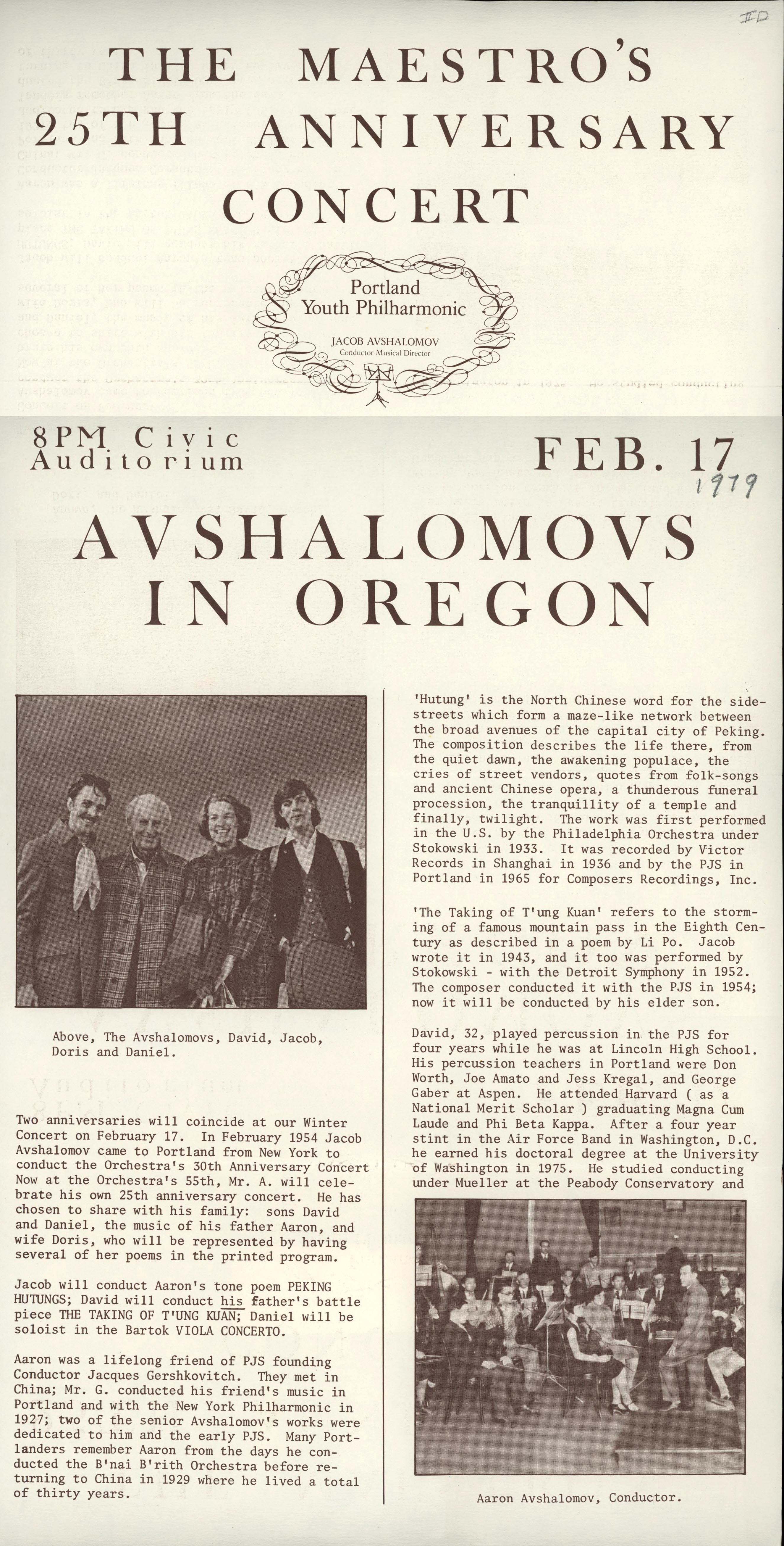 Jacob Avshalomov's 25th Anniversary Concert with Portland Youth Philharmonic, 1979.