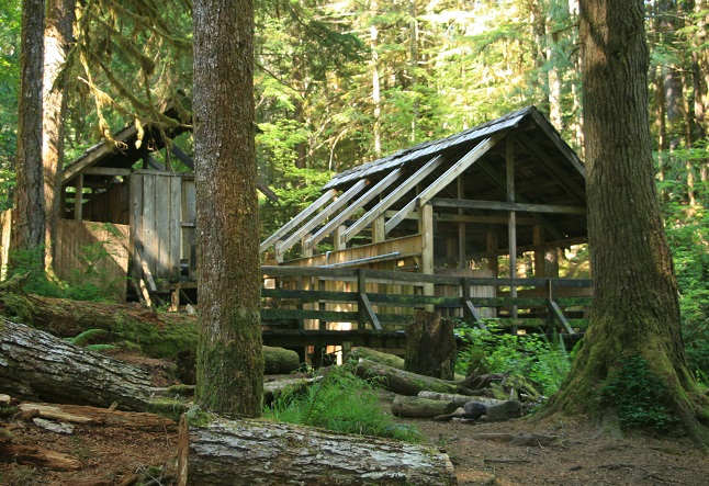 The first structures at Bagby were built in 1908. The original U.S. Forest Service forest guard station—a log cabin used for a fire crew and switchboard—was built by Phillip Putz in 1913. The cabin and an adjoining shed were added to the National Register of Historic Places in September 1999. It is only one of six remaining cabin/shed combinations built by the Forest Service in the Pacific Northwest.
