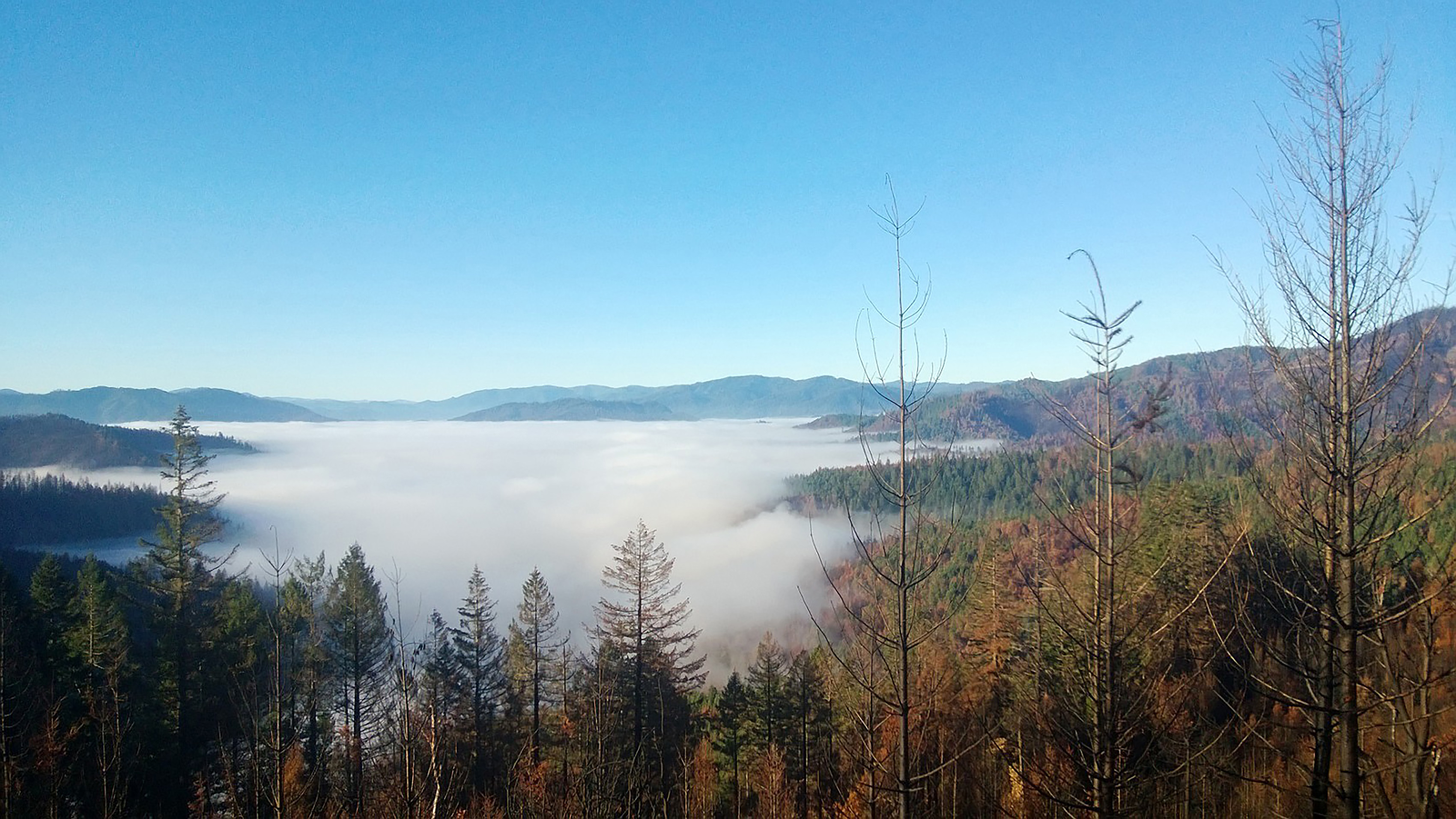 View from Grave Creek Hills toward Rogue River, near the battle site..