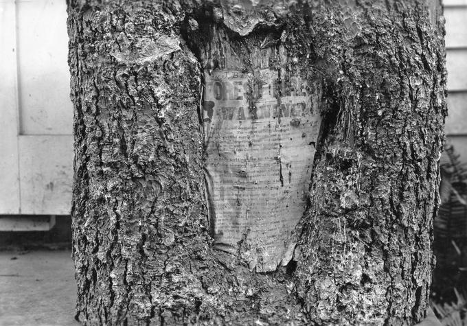A fire warning posted by Cy Bingham on August 21, 1903, at Box Canyon.
