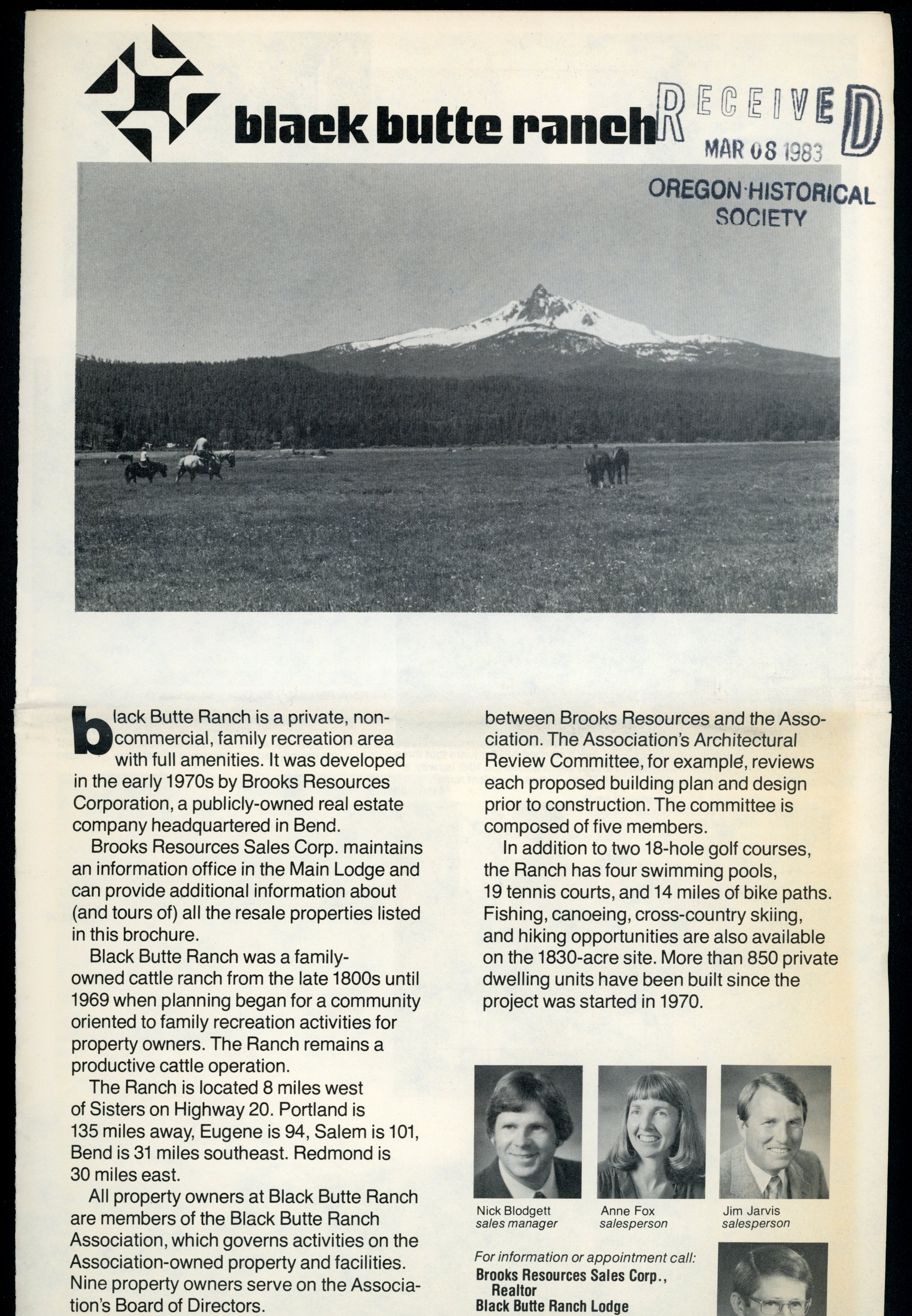 Brooks Resources real estate brochure for Black Butte Ranch, 1983.