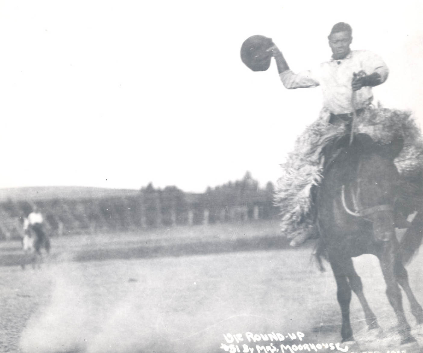 Several other African Americans also competed in the Round-Up during the 1910s. Jesse Stahl, a professional cowboy widely considered to have set the standard for bronco-riding, was already famous by the time he competed in the Round-Up in 1912. His performance in the Salinas Rodeo in California that year as well as his invention of “hoolihanding,” a dangerous maneuver that involved jumping from a horse to a bull before wrestling it to the ground, made him an important attraction at the Round-Up in the four years he competed, from 1912 through 1916.