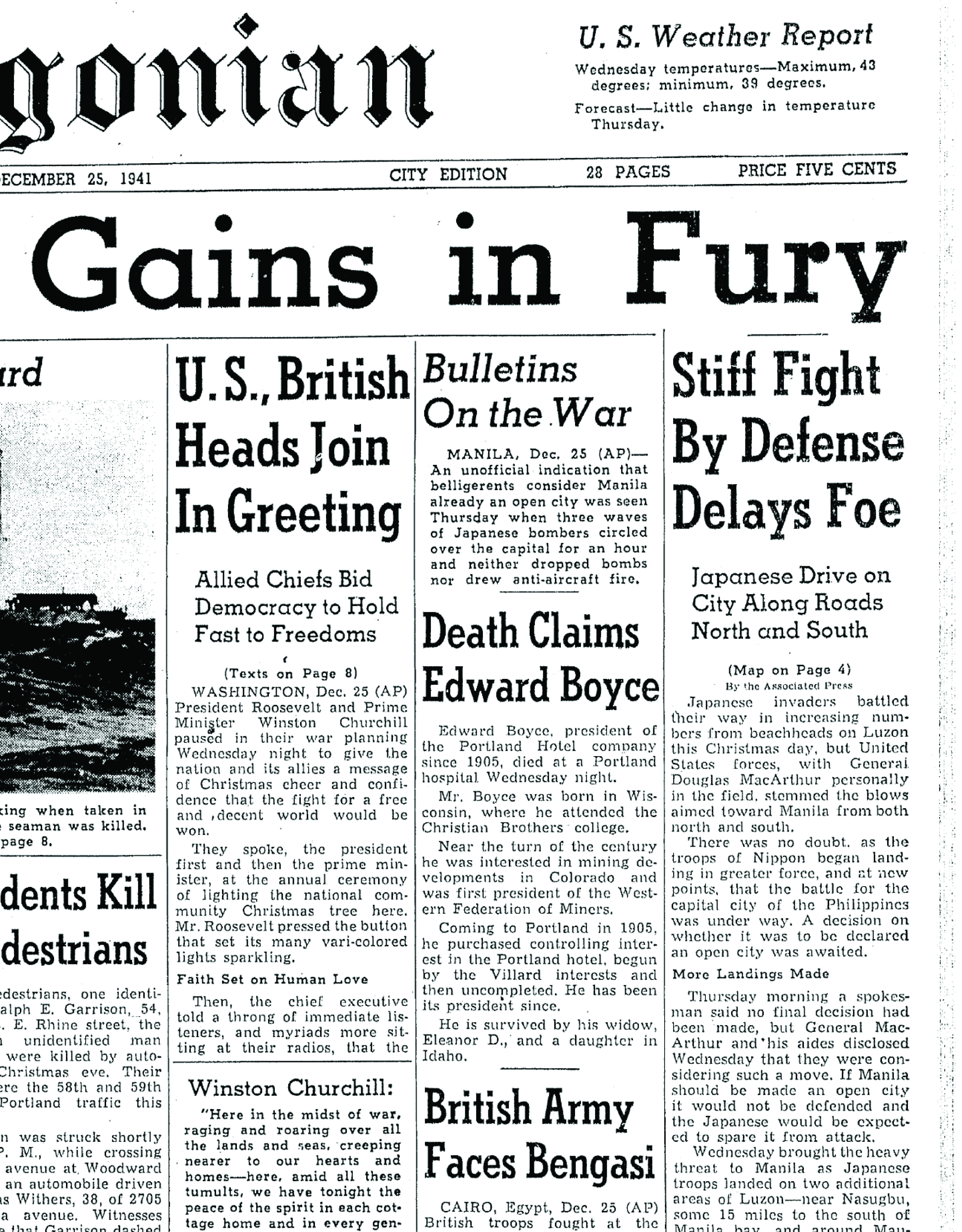 Ed Boyce's obituary appeared on the front page of the Oregonian, December 25, 1941.
