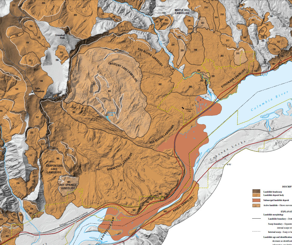 ![]()  Cascade landslide complex map, showing Bonneville landslide boundaries. Courtesy U.S. Geological Survey