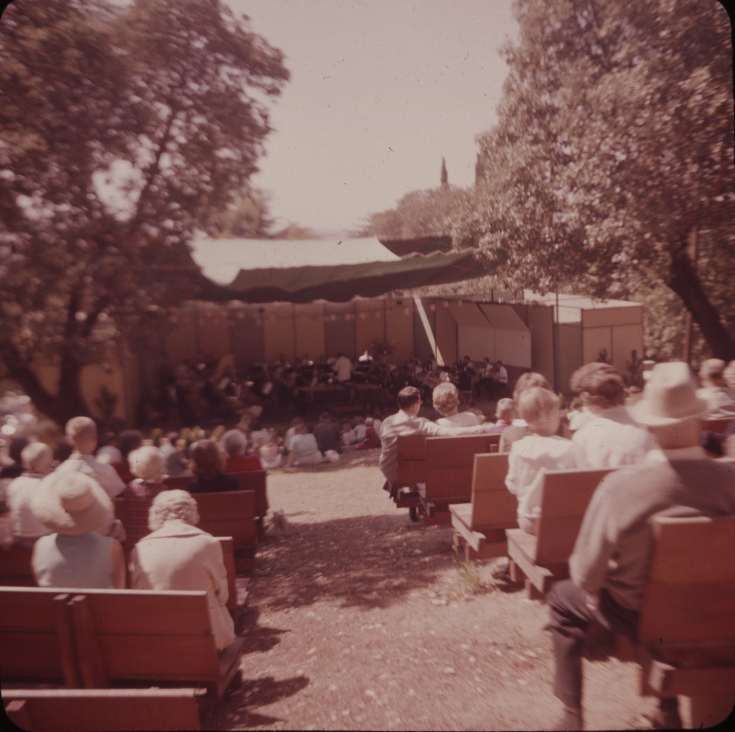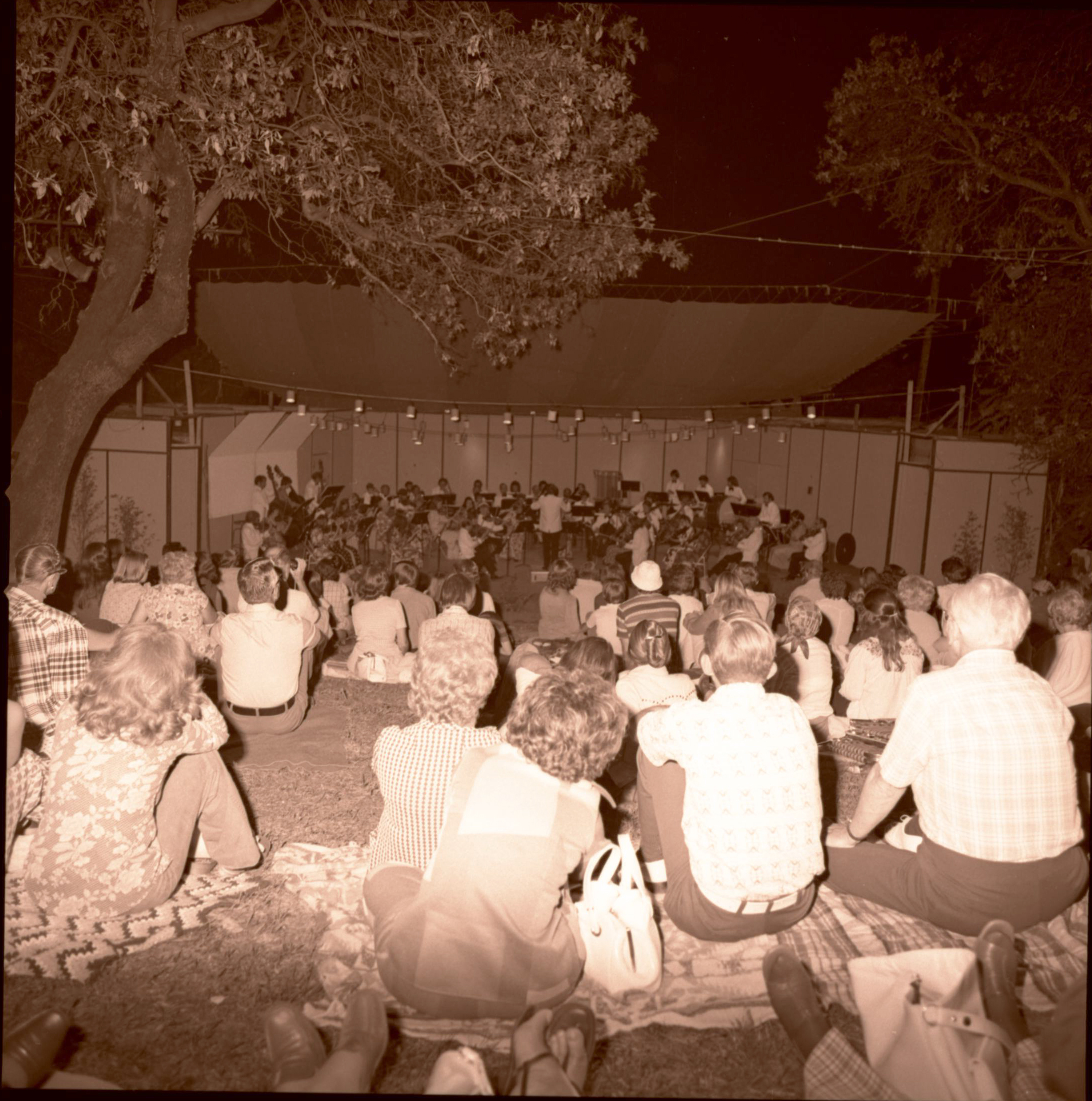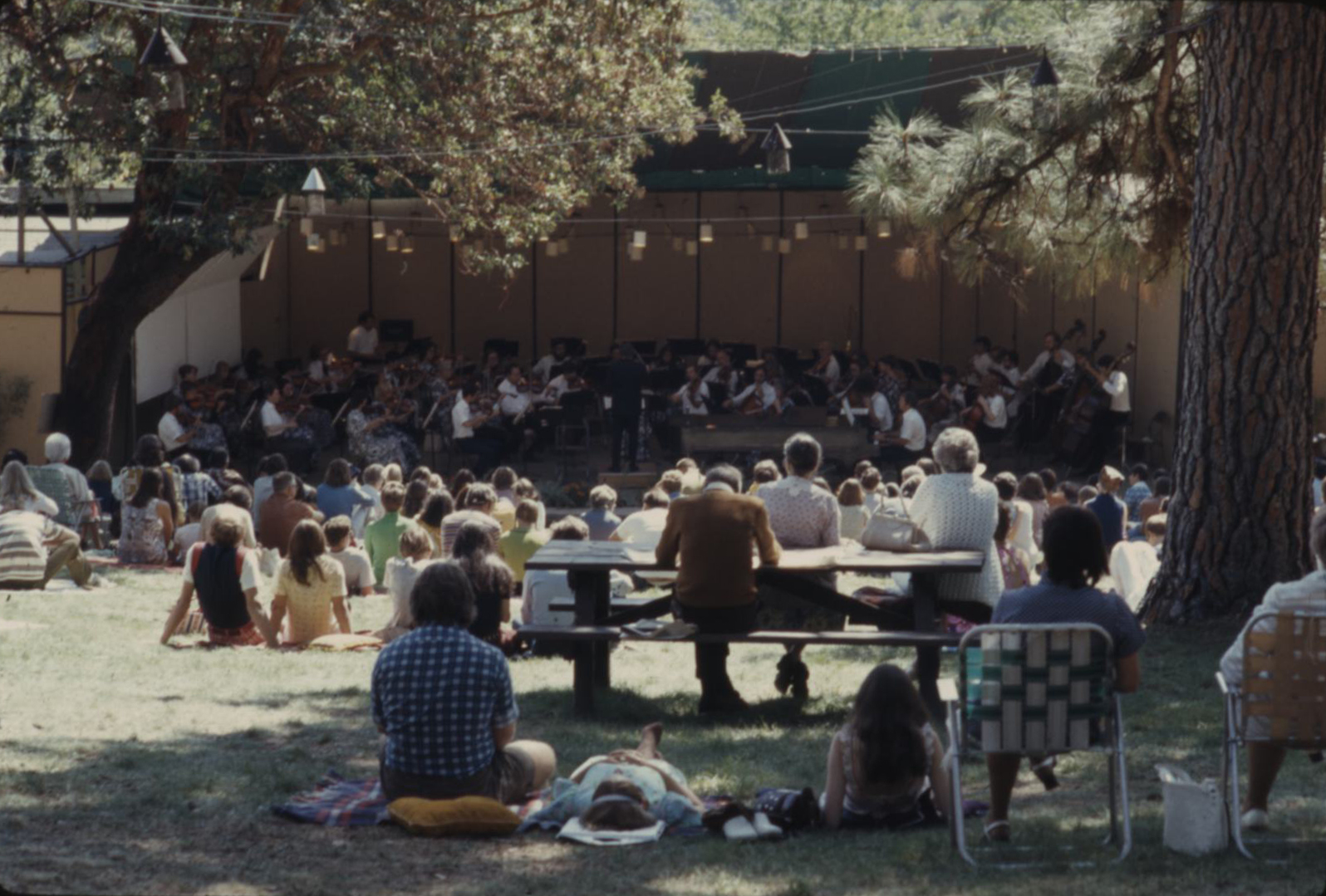 Audience enjoying a concert at the Britt Music Festival, c. 1970s.