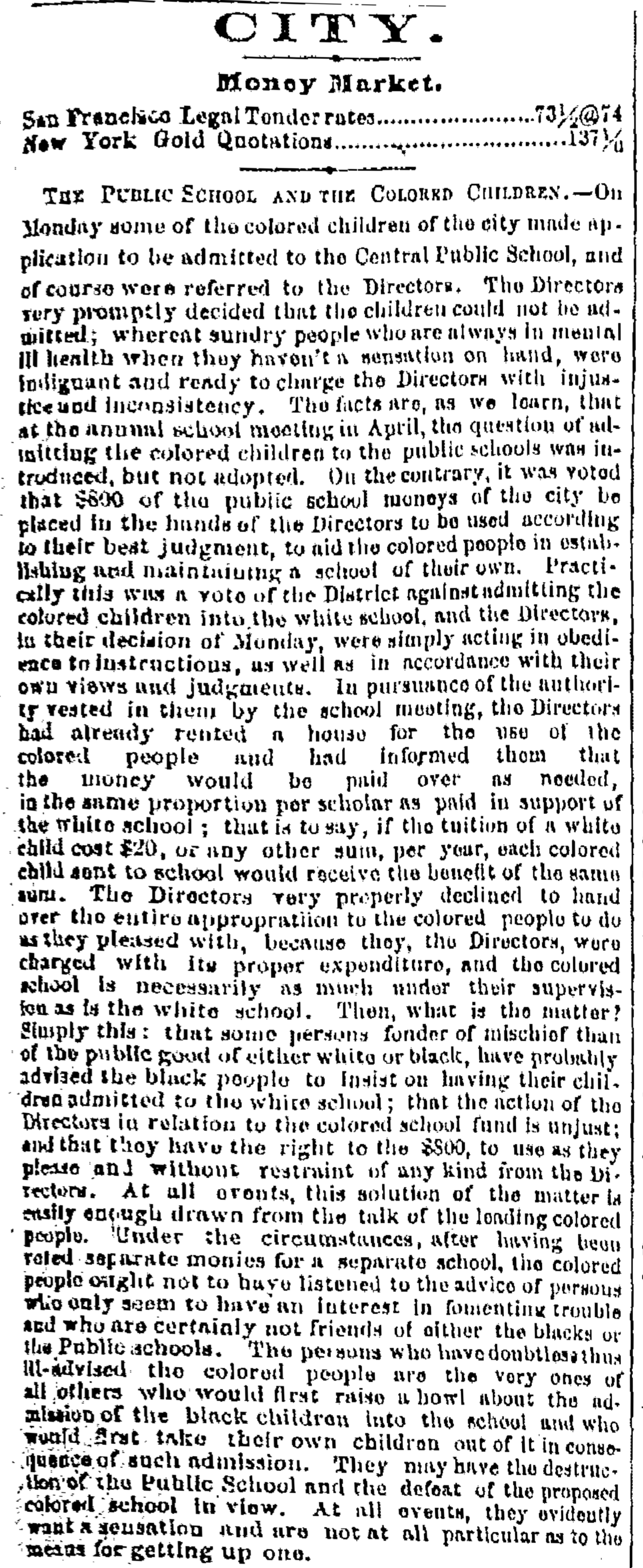 "The Public School and the Colored Children," Morning Oregonian, May 29, 1867.