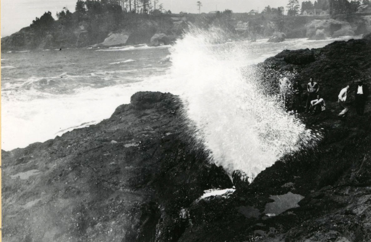 The cape has a human history that reaches back thousands of years. It was called Halaqaik in the Alsea language, possibly suggesting an “uncovered place, open place or exposed place.” This is an apt description of the open coastal prairies that covered the headland until Native burning ceased, which allowed for the encroachment of Sitka spruce forest from older stands nearby. Alsea families traditionally hunted and fished and dug for clams and mussels in the intertidal area. An Alsea village was near the base of present-day Cape Perpetua, with other major villages located to the north, near Seal Rock, and along the Alsea River estuary.