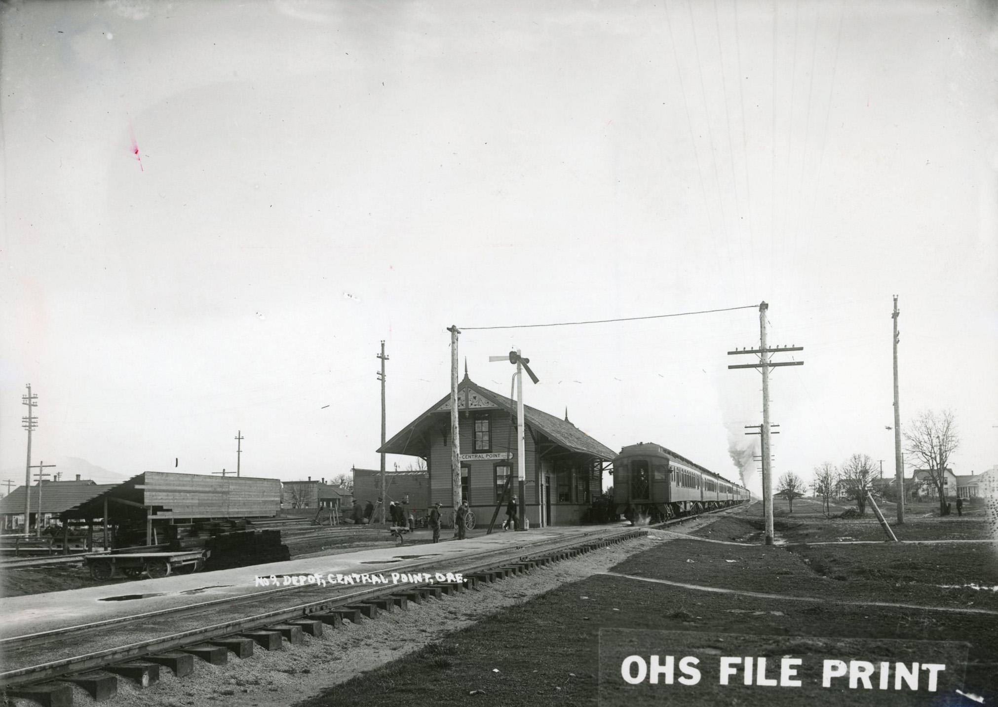 In 1883, the Oregon and California Railroad bought a right-of-way from Haskel Amy a half-mile west of the Central Point crossroads; but when Amy reportedly did not provide land for a depot, the railroad built a depot four miles to the south on land platted for the town of Medford. Central Point citizens, determined to take advantage of the railroad, relocated their village a half-mile west on land the Magruders, Amy, and T.H. Beall “pooled and consolidated.” The new Central Point was bounded by Fourth and Front Streets and Laurel and Alder Streets. The town built its own railroad depot in 1888 in the middle of present-day Pine Street. The original town center, near today's Interstate 5 interchange and Freeman Road, became known as Manzanita or Old Central Point.