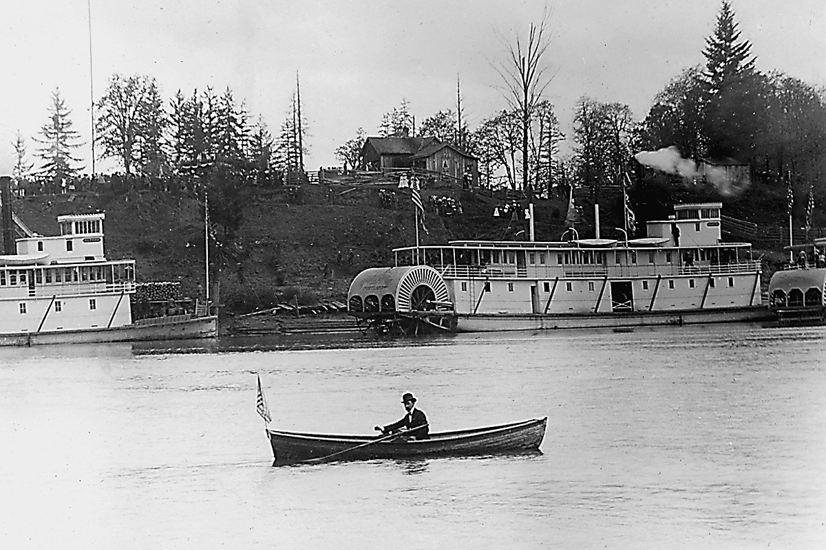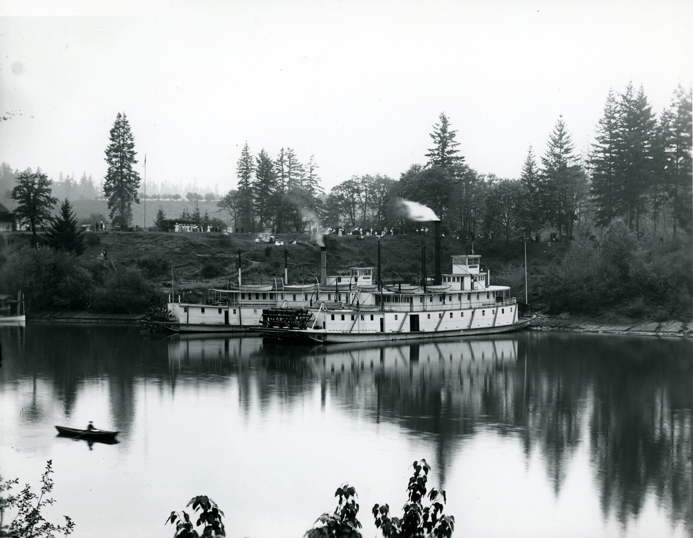 Summertime crowd on the sternwheelers G.W. Shaver and Sarah Dixon, Champoeg, c.1890.