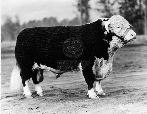 Champion Hereford Bull owned by Herbert Chandler of Baker, Oregon, 1928.