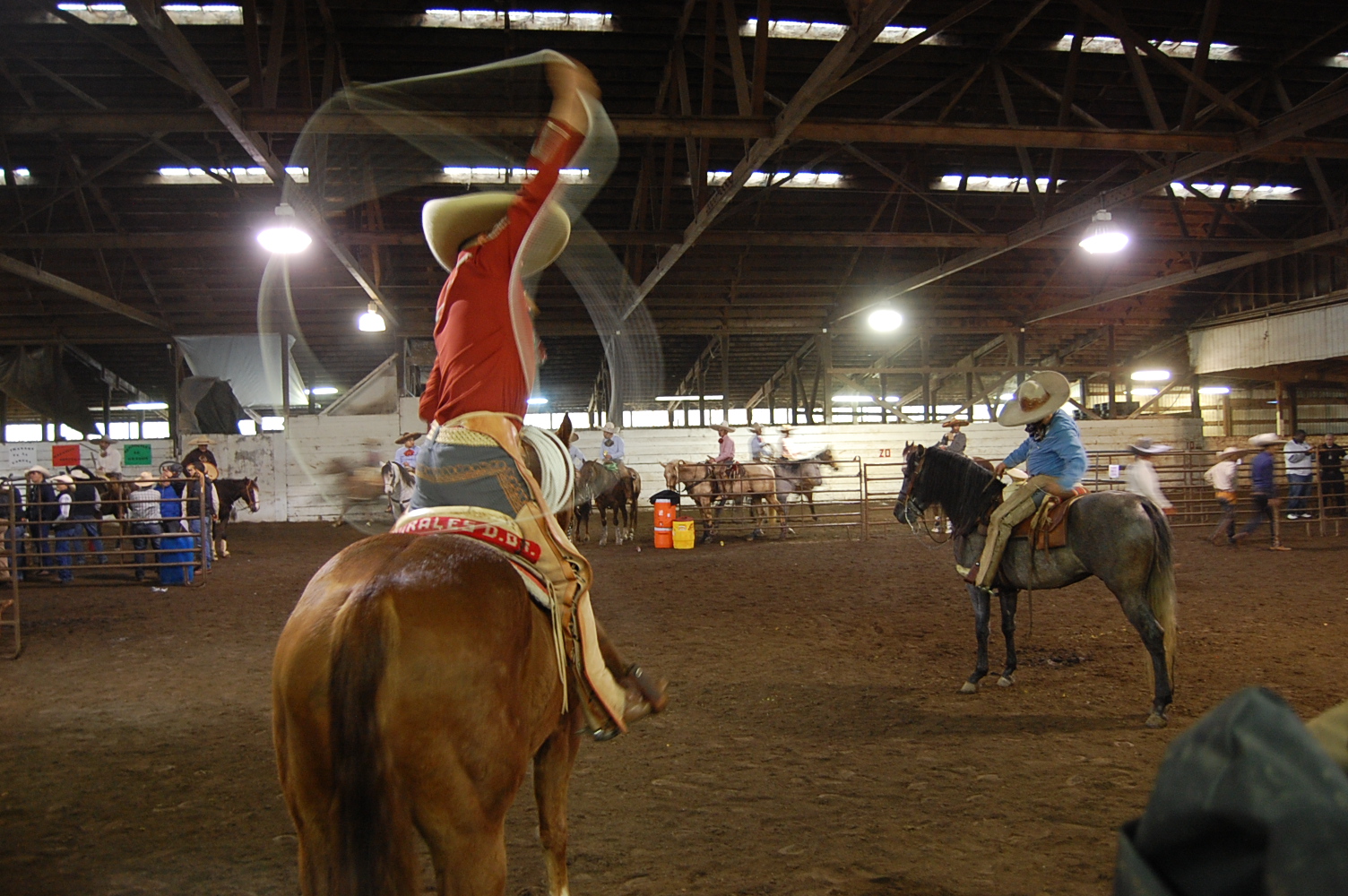 Charrería is a Mexican sport that involves skillful roping, talented horsemanship, and working with cattle. Beginning in 1943, many of the braceros who worked in Oregon established residence in the state, and Latino communities in places such as the Willamette Valley, Klamath County, and eastern Oregon created spaces to informally practice charrería, as they had back home. For many, the skills used in the game had been part of their livelihood in Mexico.