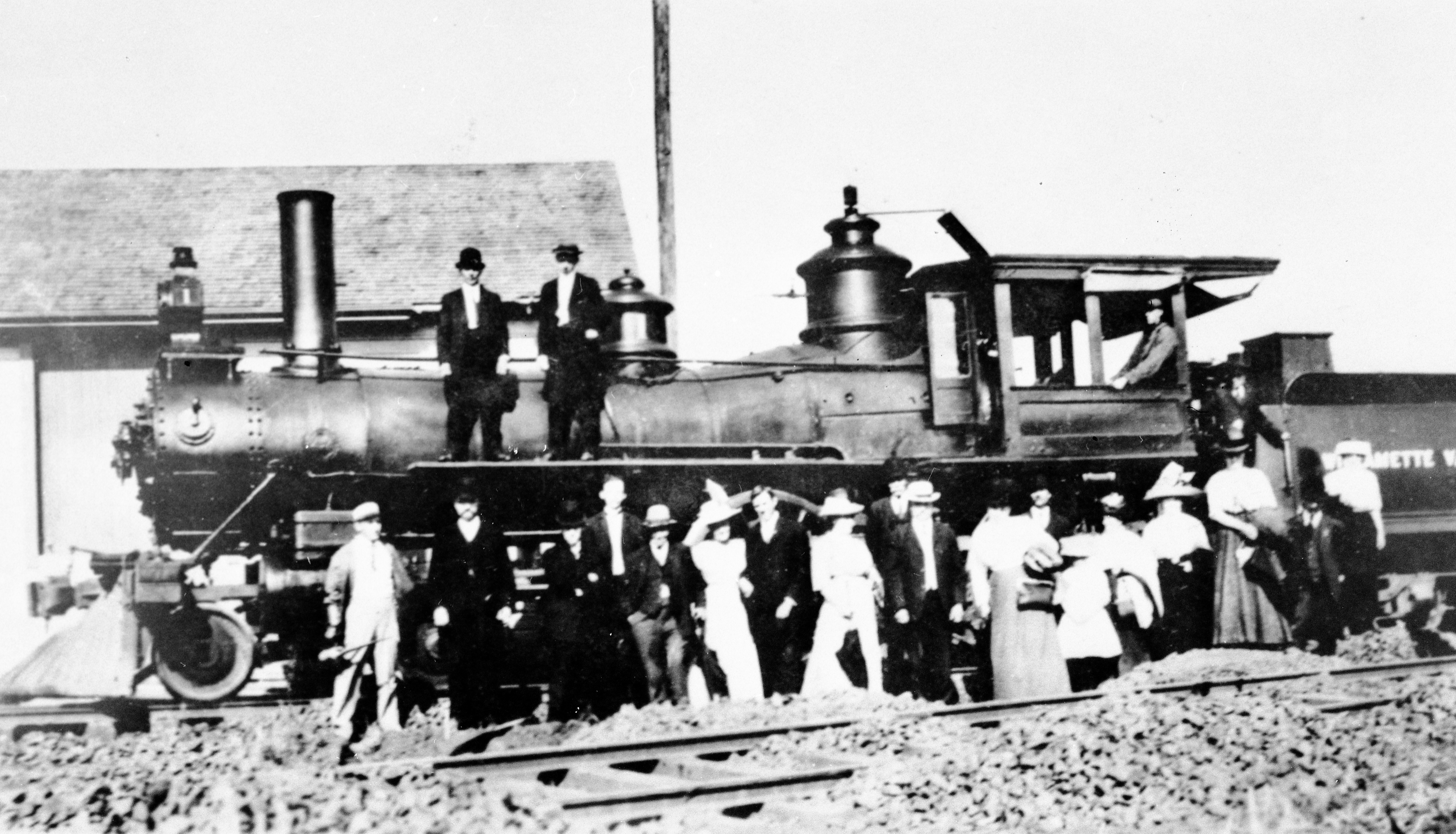 Although never realized, the railroad’s name reflected plans to extend tracks through the Coast Range to the Pacific. It was the second railroad to be so named: Colonel Thomas Egenton Hogg had organized a railway of the same name in 1874, when he began building a line from Yaquina City to Corvallis. The new WV&C was completed in September 1911. Regular service commenced on June 30, 1912, using a former Northern Pacific Railroad 4-4-0 steam engine. Until management began exploring more efficient motive power, passengers rode in a combination passenger and freight coach.