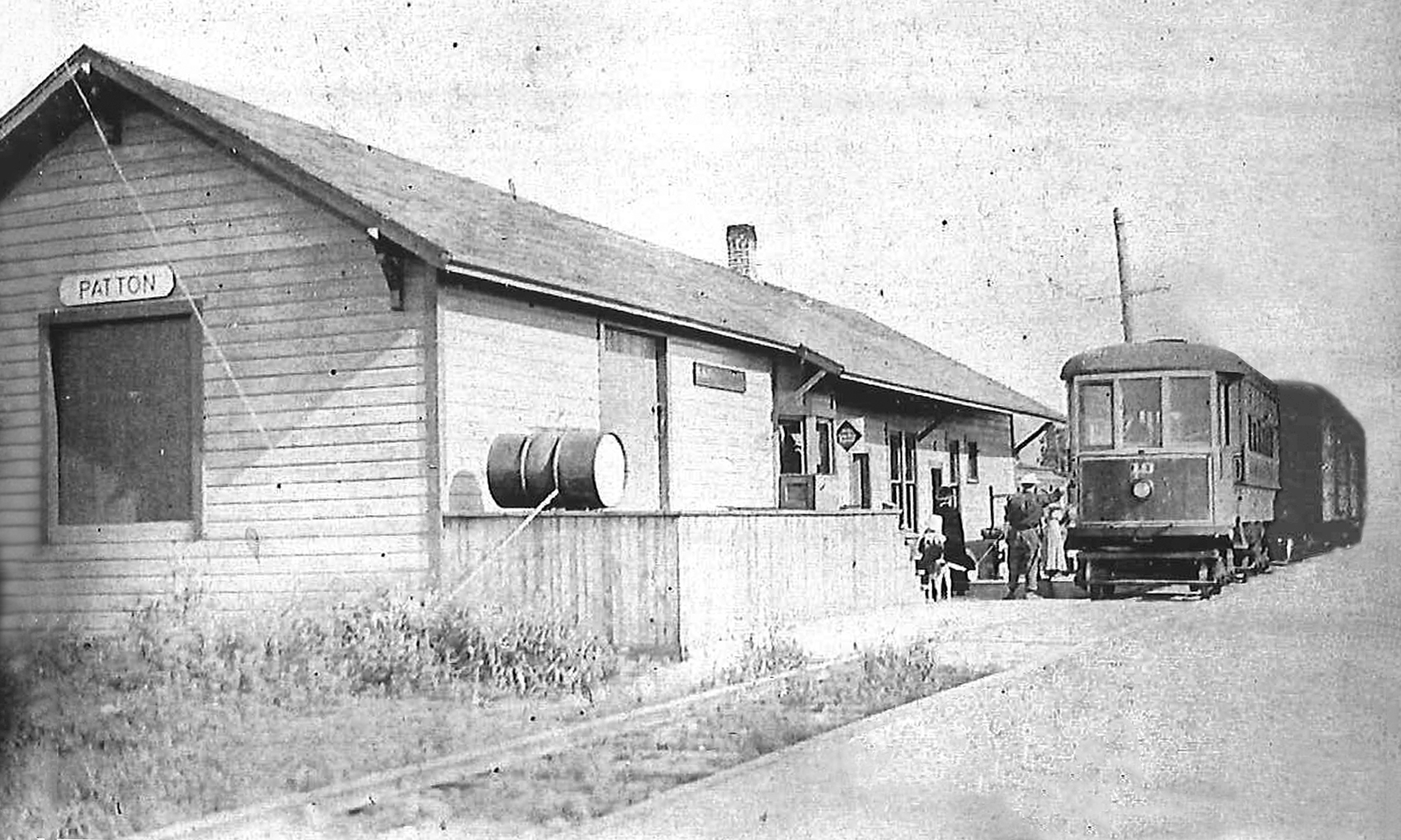 Willamette Valley & Coast Railroad battery-powered streetcar at Patton, 1910s..