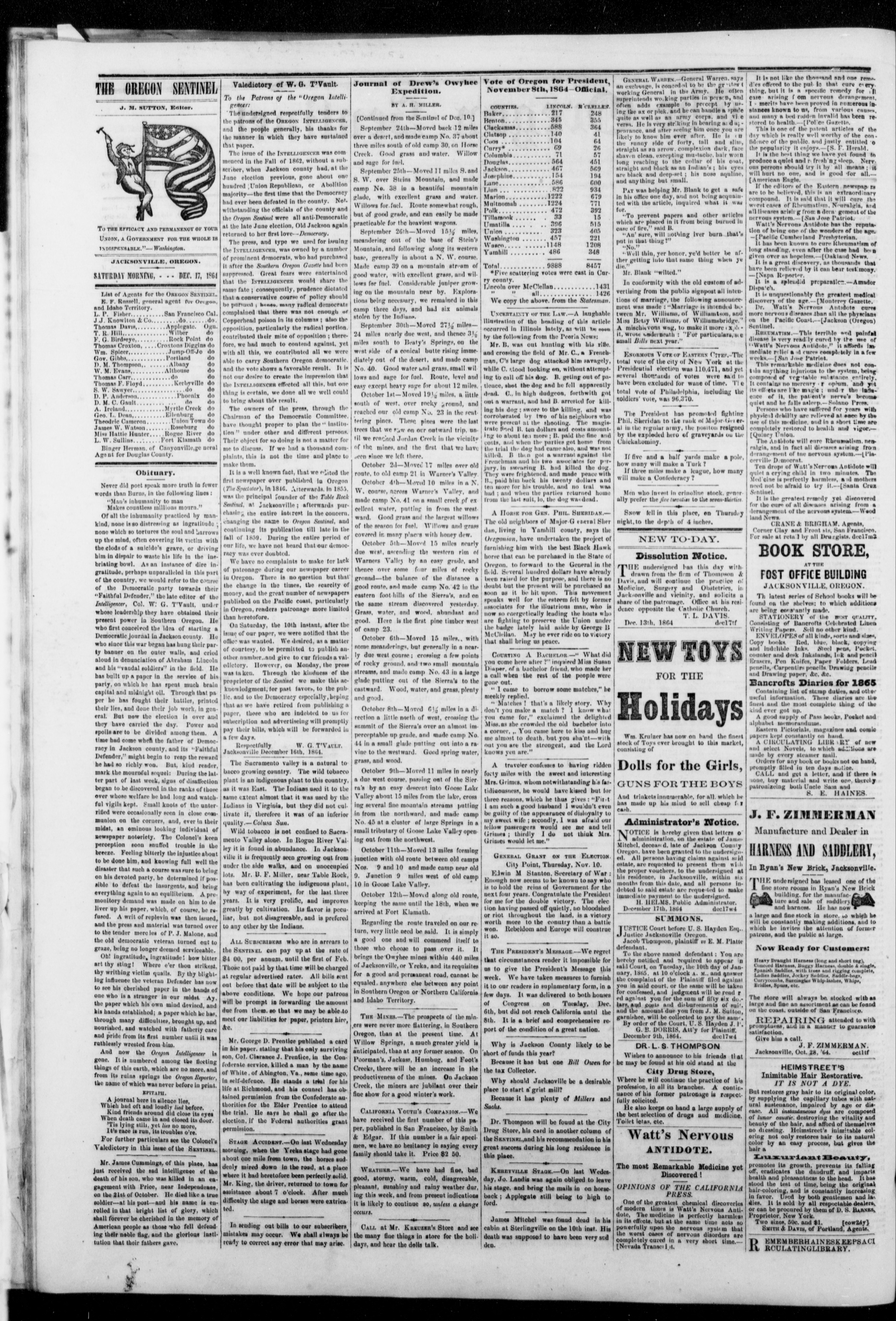 Oregon Sentinel, Jacksonville, December 17, 1864.