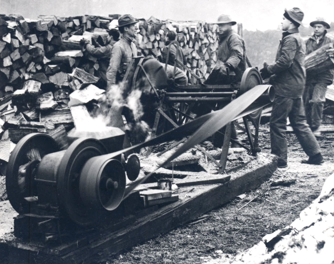 ![]()  CO crew stacks wood near Herman Creek, 1942. Courtesy Oreg. Hist. Soc. Research Library, 015050