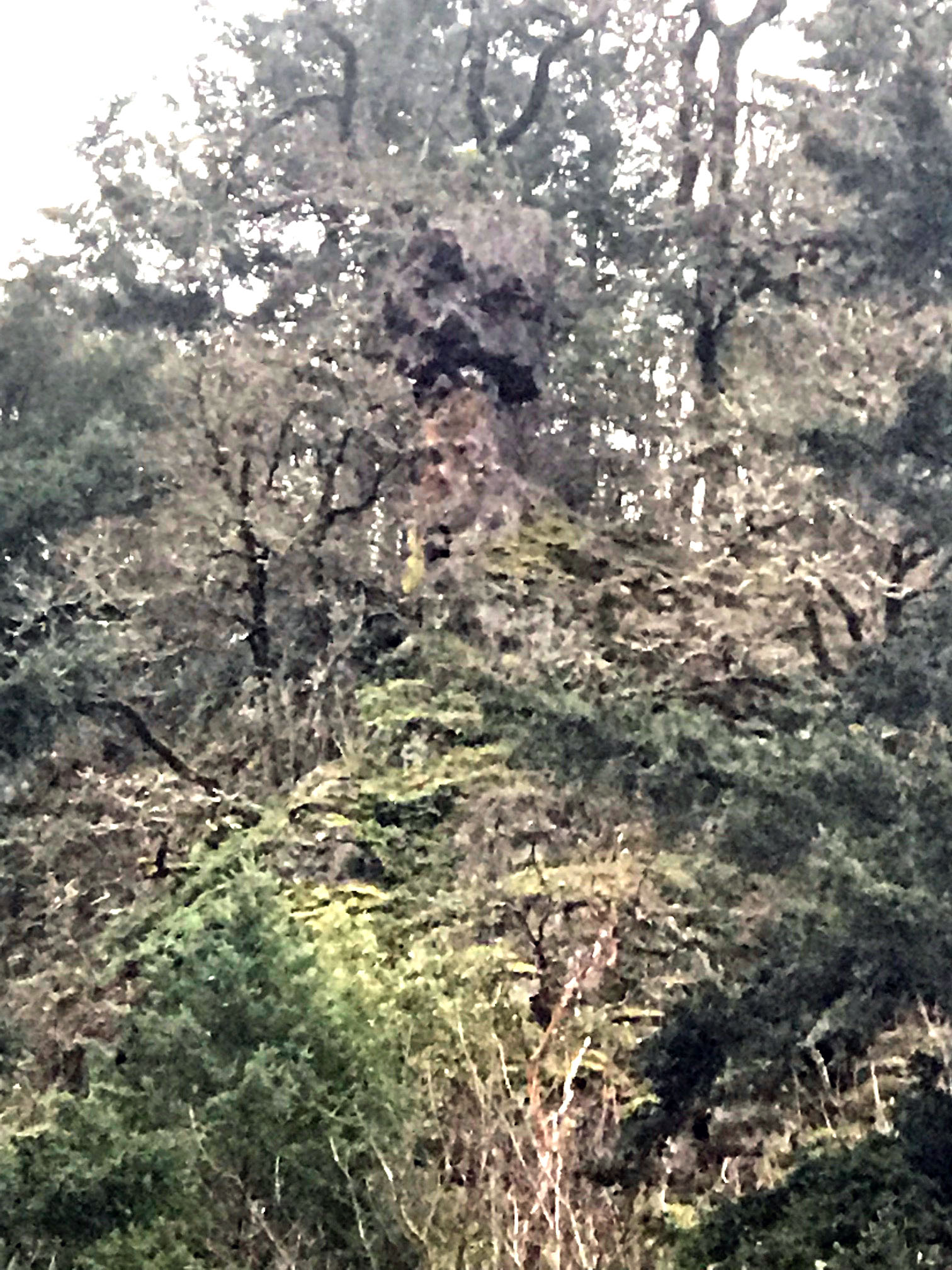 Coalcas Pillar is barely visible on the hillside and is no longer accessible, 2018.