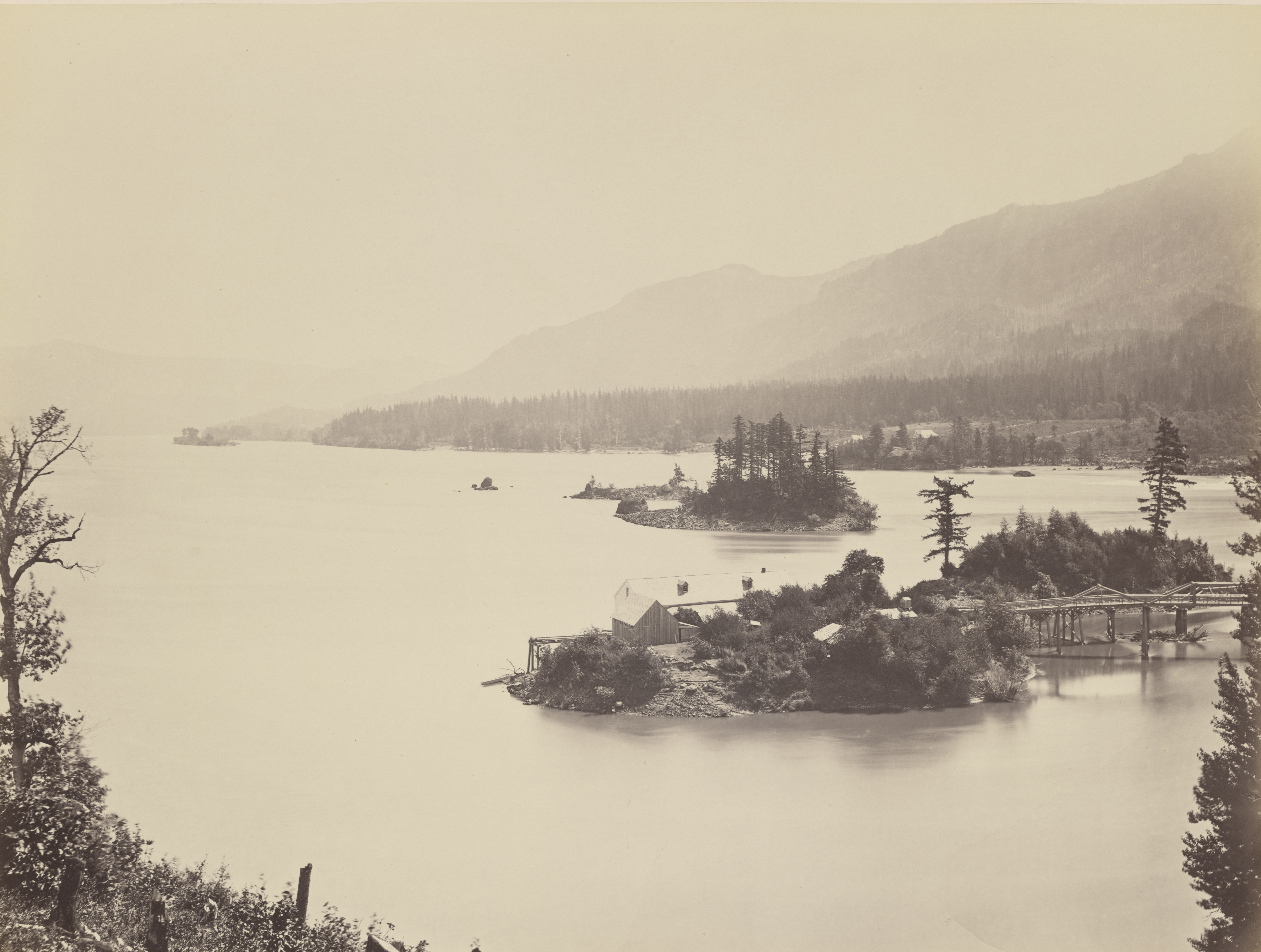 "Islands in the Columbia. Upper Cascades," by Carleton Watkins, 1867.