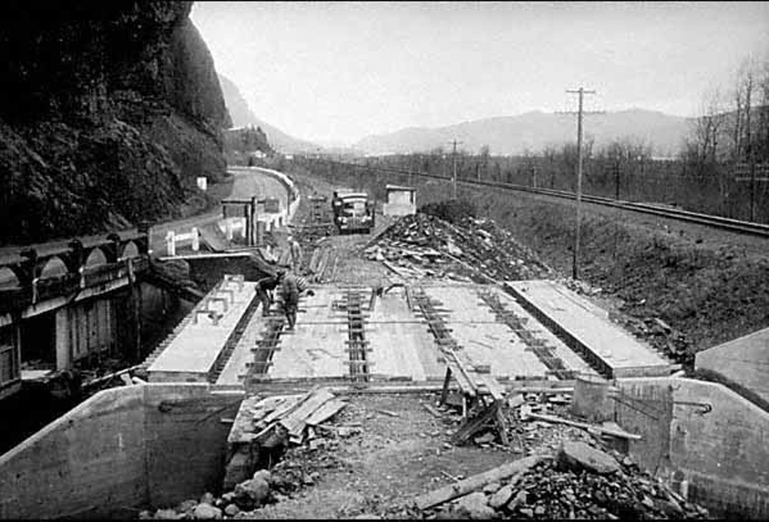 Oneonta Gorge bridge construction, Columbia River Highway, 1948.