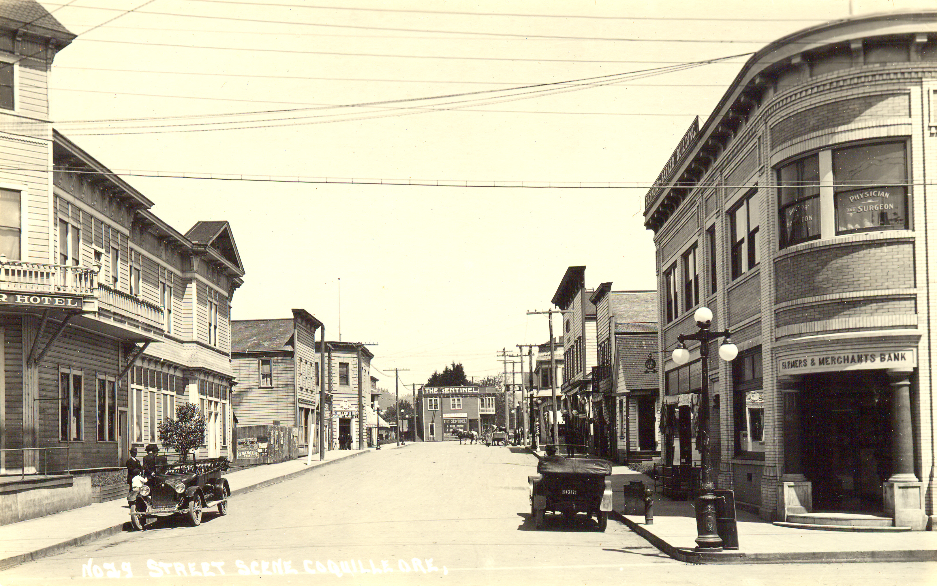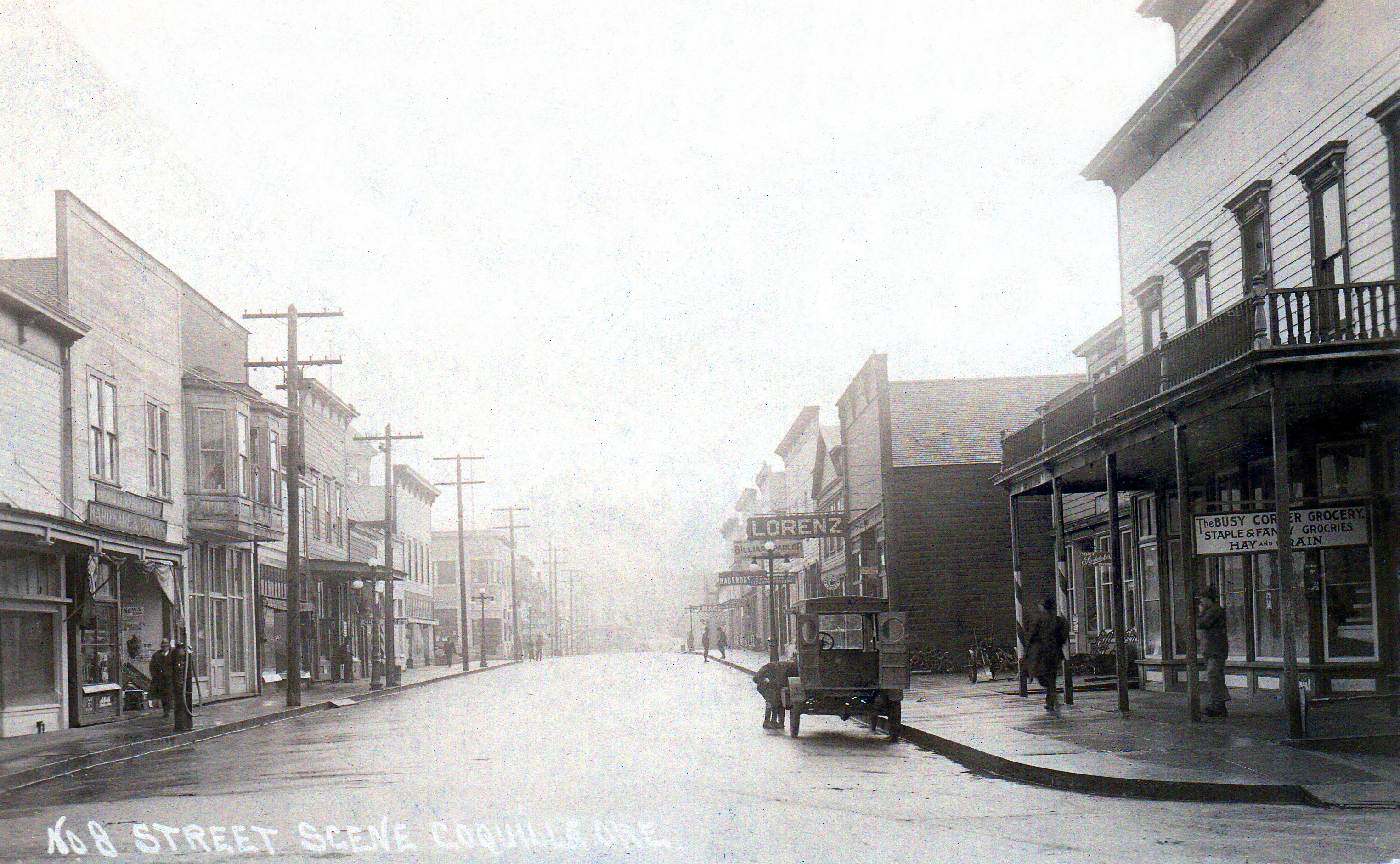 ![]()  Front Street in Coquille looking east c. 1910. Courtesy Coquille Valley Museum, David Sell Collection