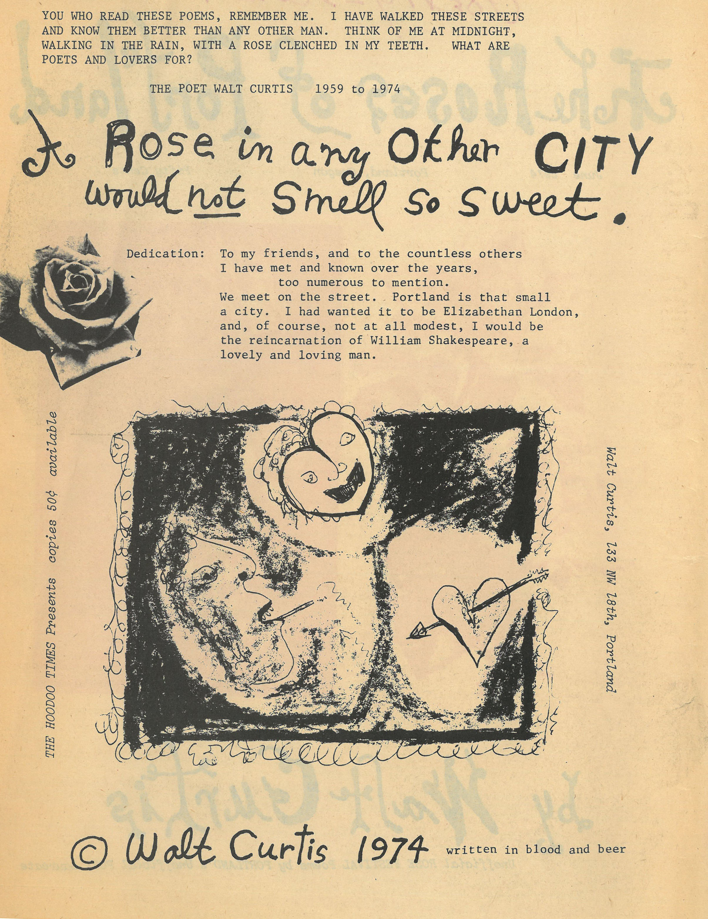 Rose poems in The Roses of Portland by Walt Curtis, June 1974.