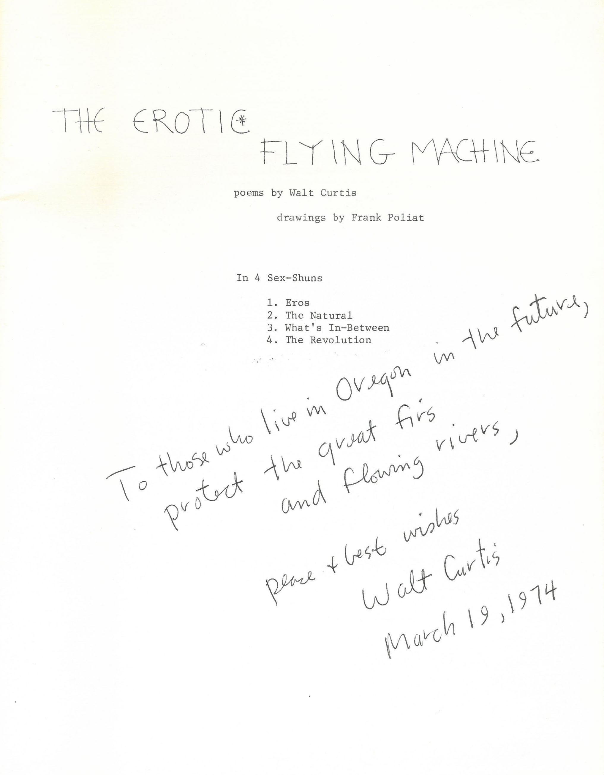 Oregon Historical Society Research Library Pamphlets, PAM 811 C9819er: The Erotic Flying Machine: Poems by Walt Curtis, 1971