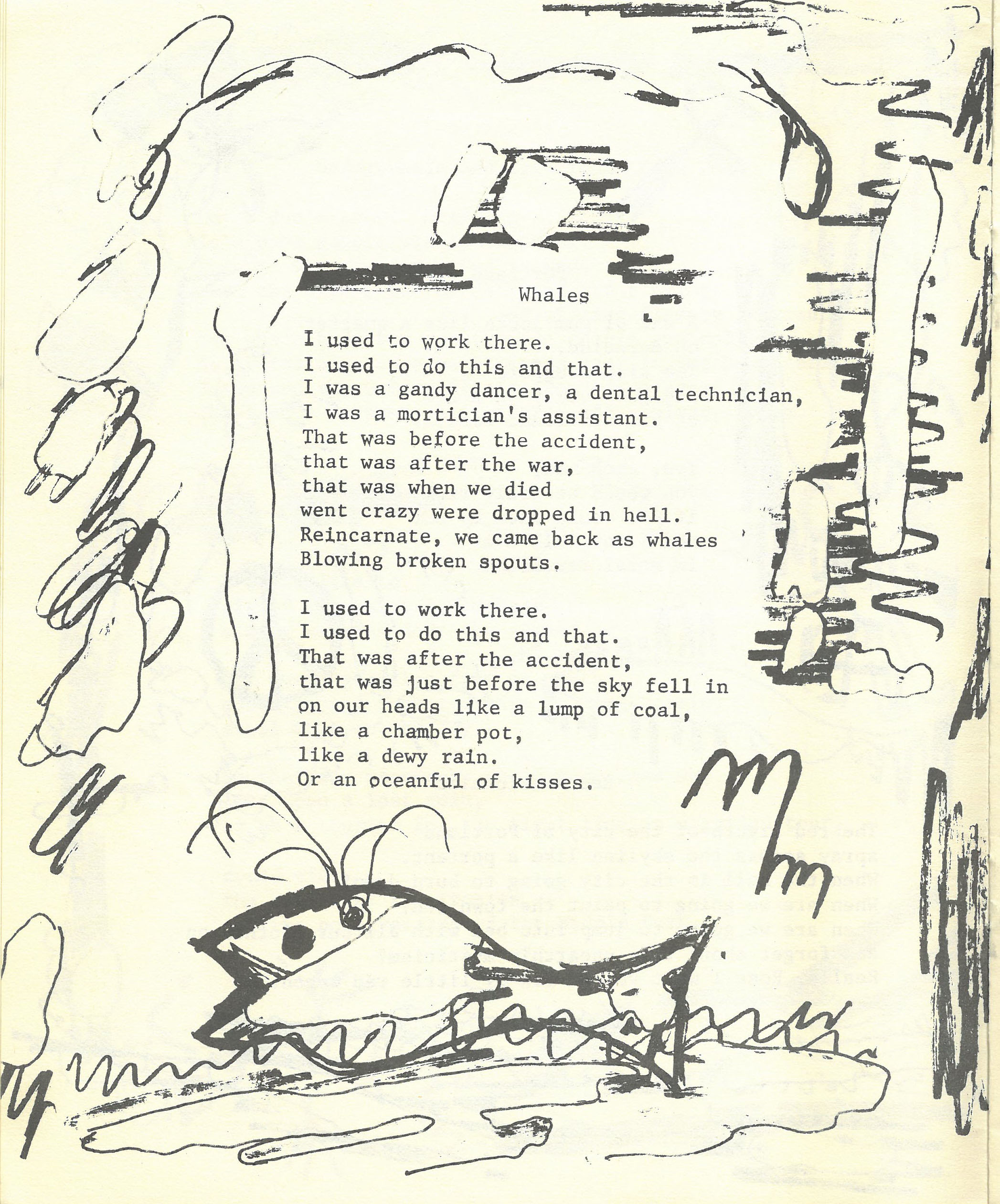 Whales poem by Walt Curtis in Angel Pussy: and other urban American poems, 1970.
