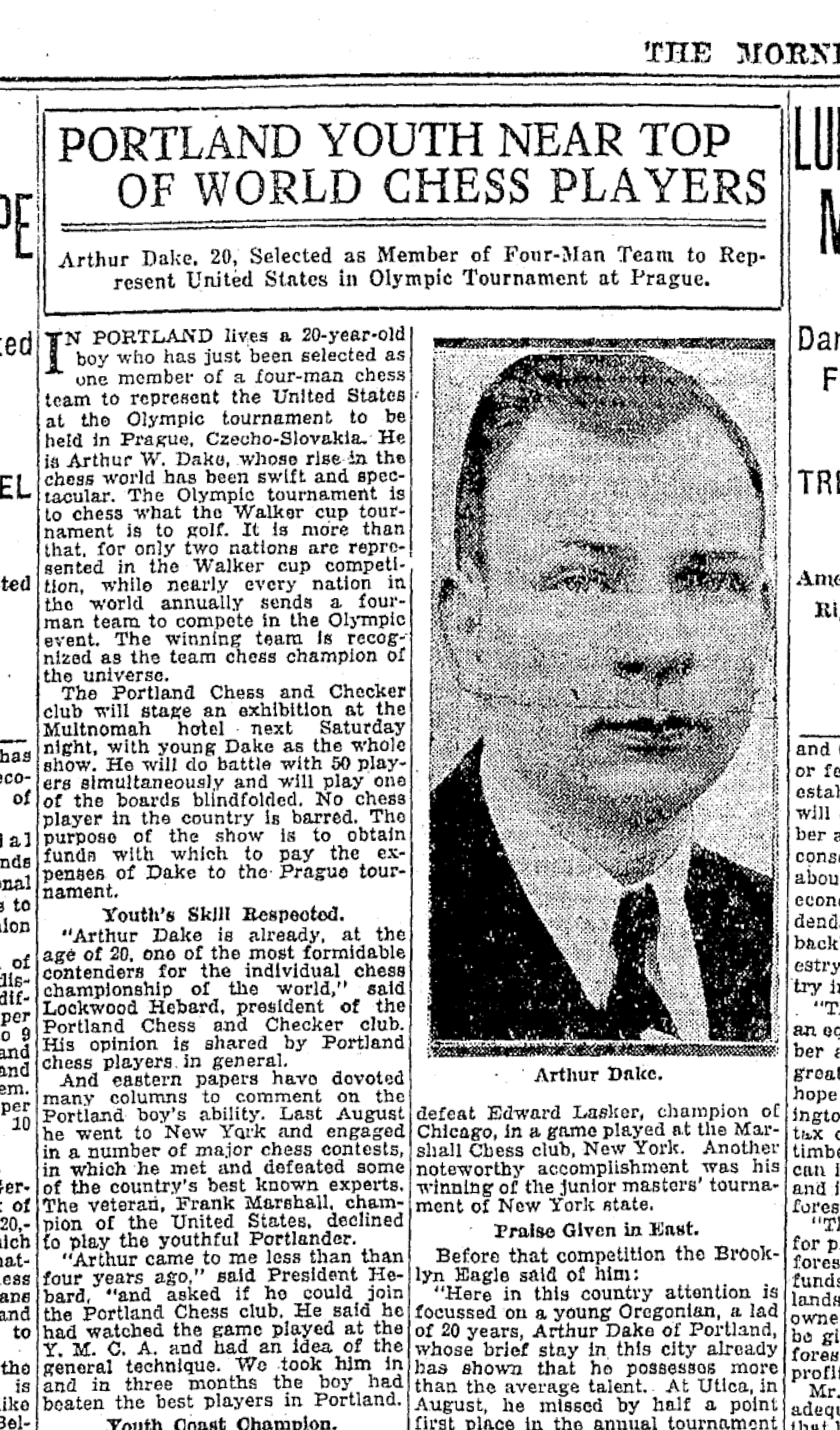 "Portland Youth Near Top of World Chess Players," Morning Oregonian, Feb. 16, 1931..