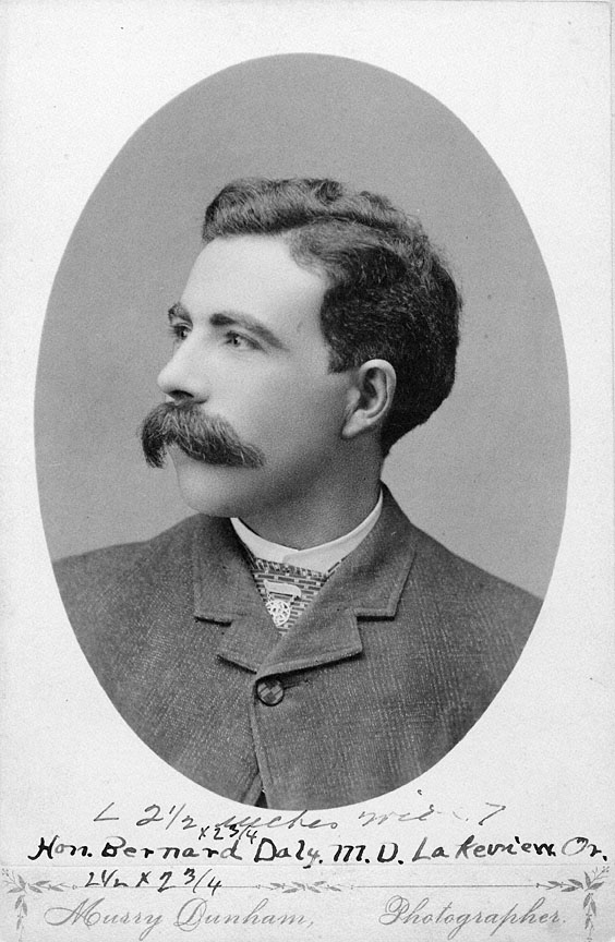 Bernard Daly did much to improve the lives of Oregonians, particularly in Lake County. He was a doctor, banker, and rancher and served as a state senator and county judge. He was a regent of the Oregon Agricultural College (now Oregon State University) from 1898 to 1906. After his death in 1920, the bulk of his estate (about a million dollars) established the Bernard Daly Educational Fund for Lake County youth.