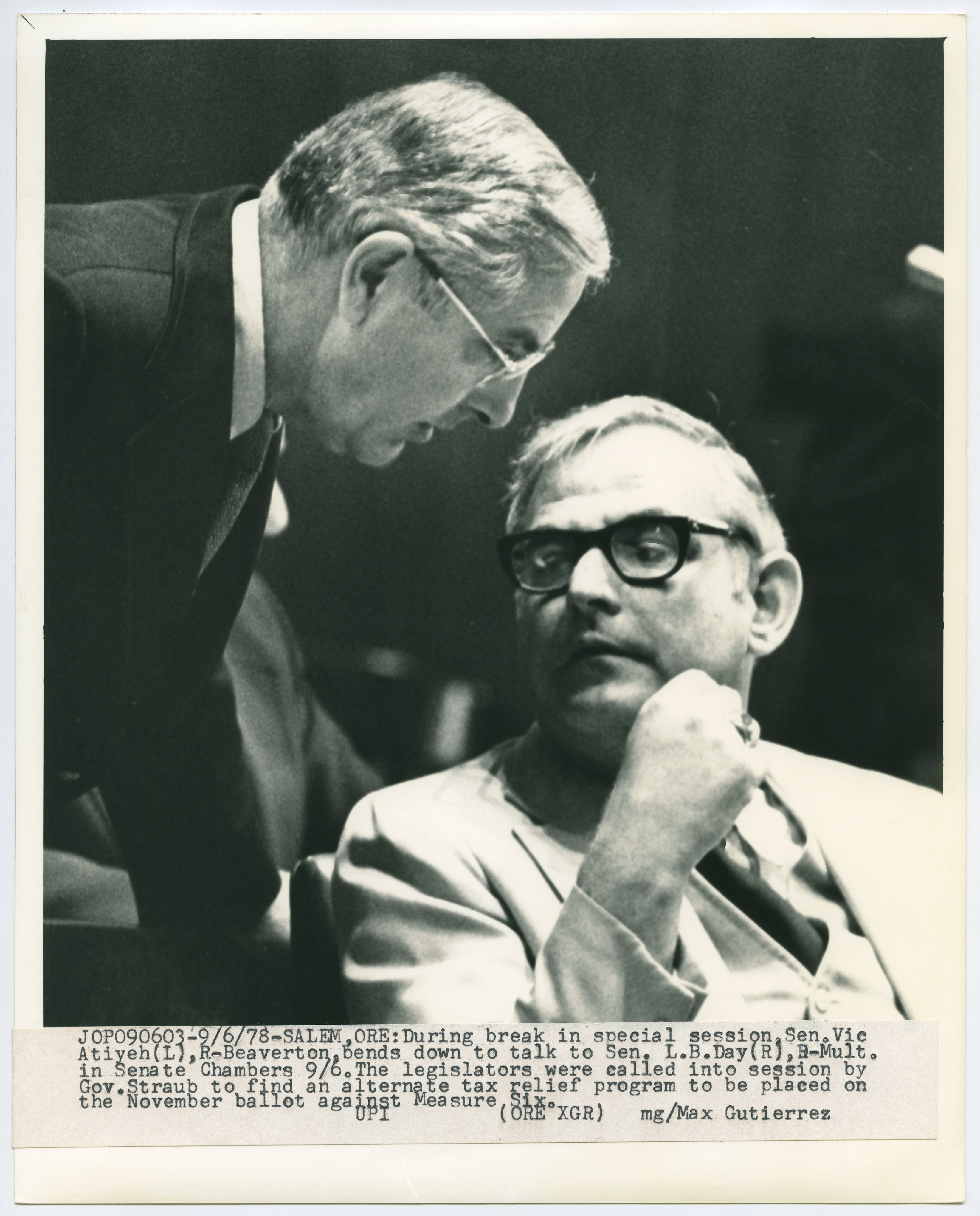 “Senators Atiyeh and Day [right] at a special session,” 1978.