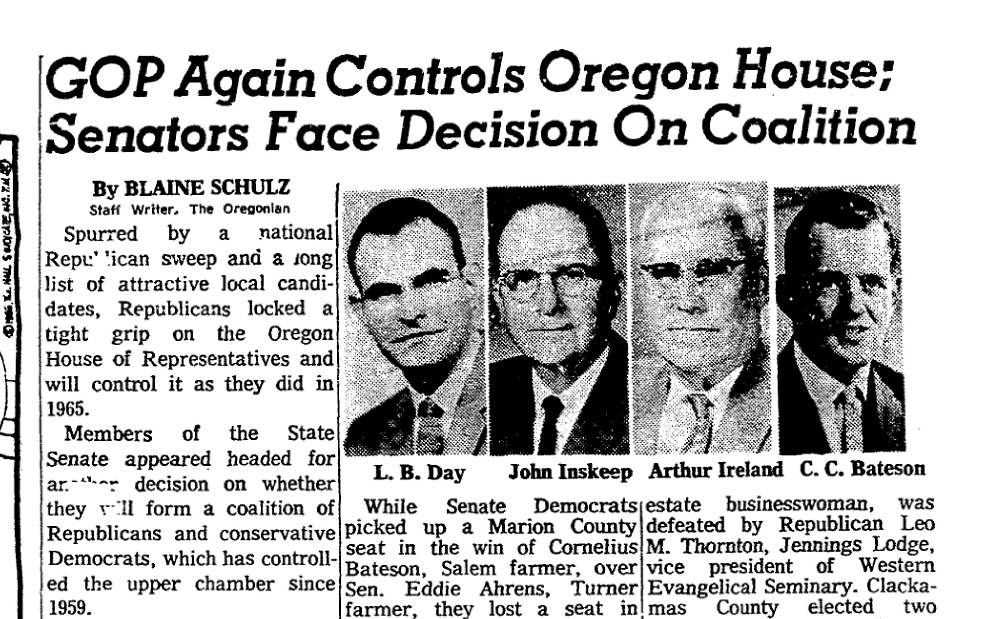 "GOP Again Controls Oregon House," Oregonian, Nov. 10, 1966.
