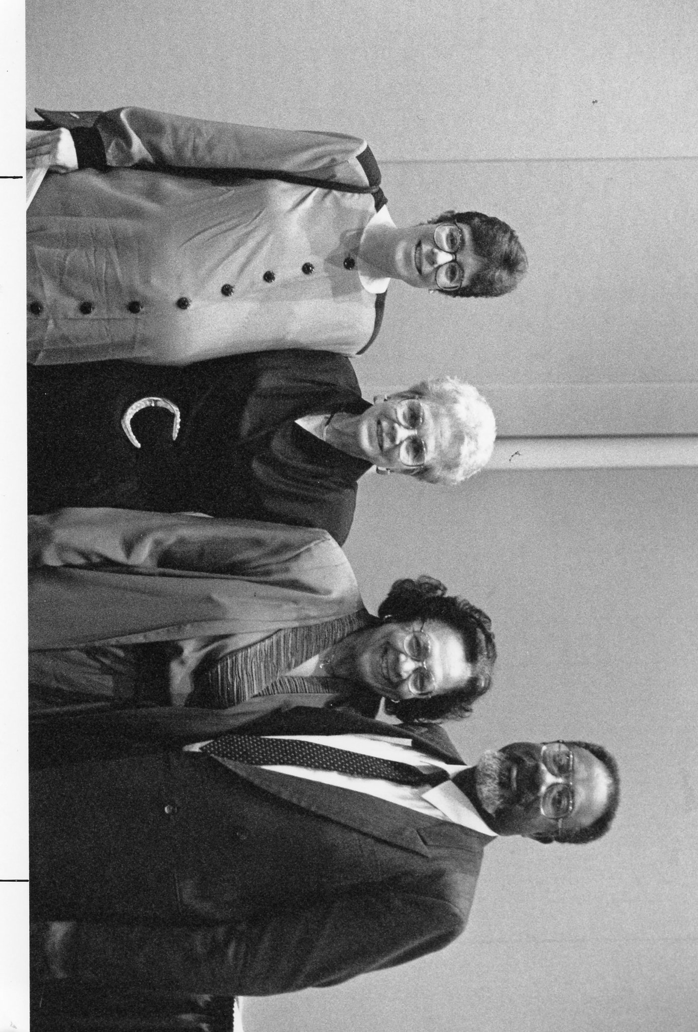 Judge Ann Aiken, Justice Betty Roberts, Judge Mercedes Deiz, and Judge Roosevelt Robinson at the Oregon Women Lawyers Awards Ceremony, 1992.