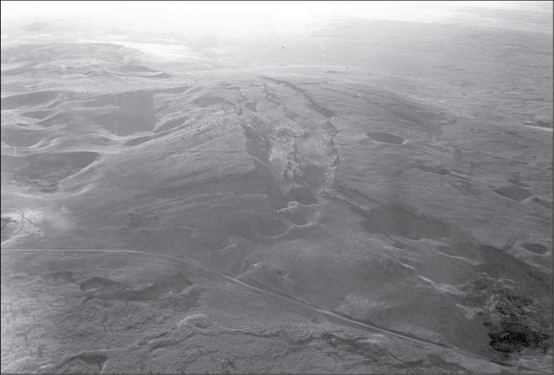 During the early eruptive phase, lava spread from a central fissure or vent to cover a circular expanse about three miles in diameter. Conditions changed when magma (molten rock below the surface) filled the shallow subsurface rather than being forced out to the surface as lava flows. Consequently, the solidified crust of the lava field swelled into five or six elongated welts as high as 500 feet above the surrounding lava plain.