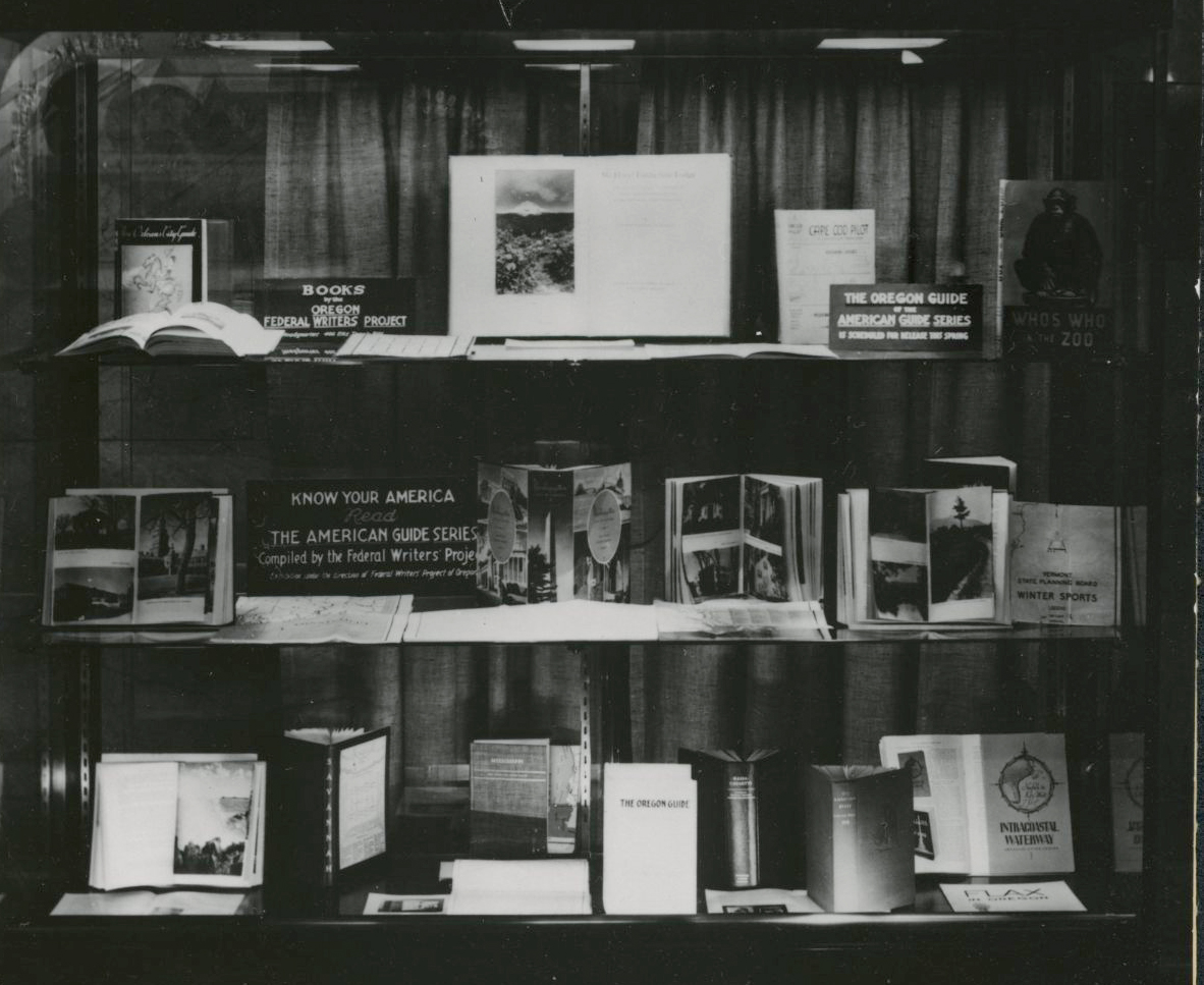 Display of books by Federal Writers Project authors, First National Bank, Portland, 1939.