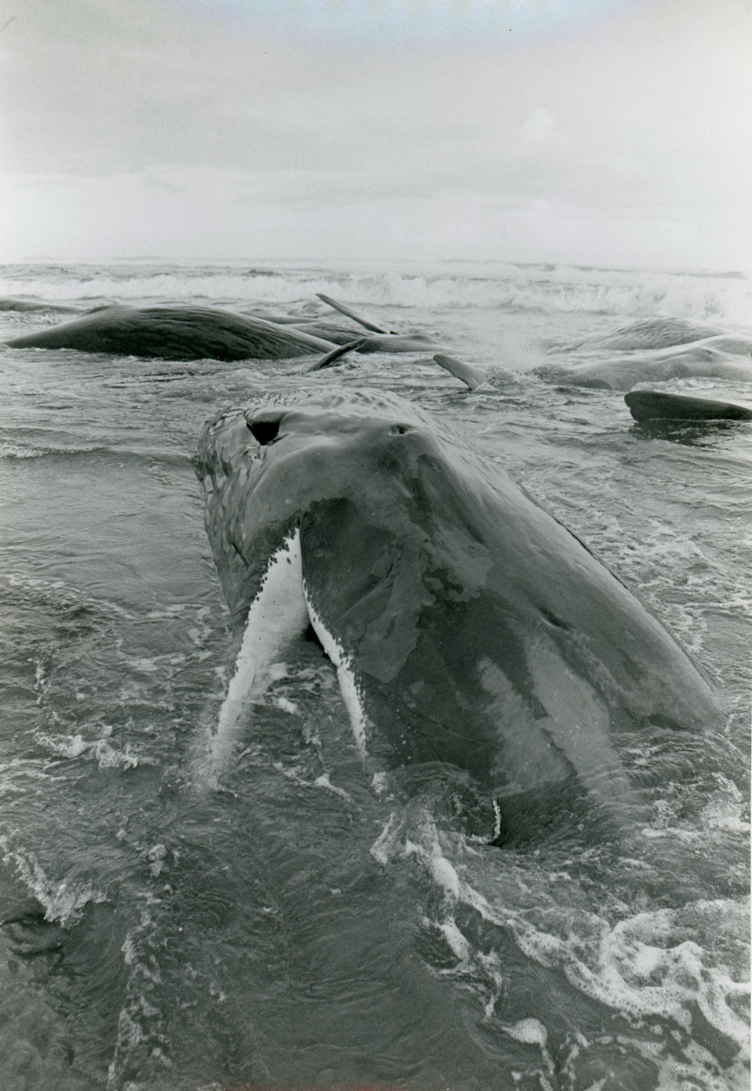 Whales beached on Oregon coast, near Florence, 1979.